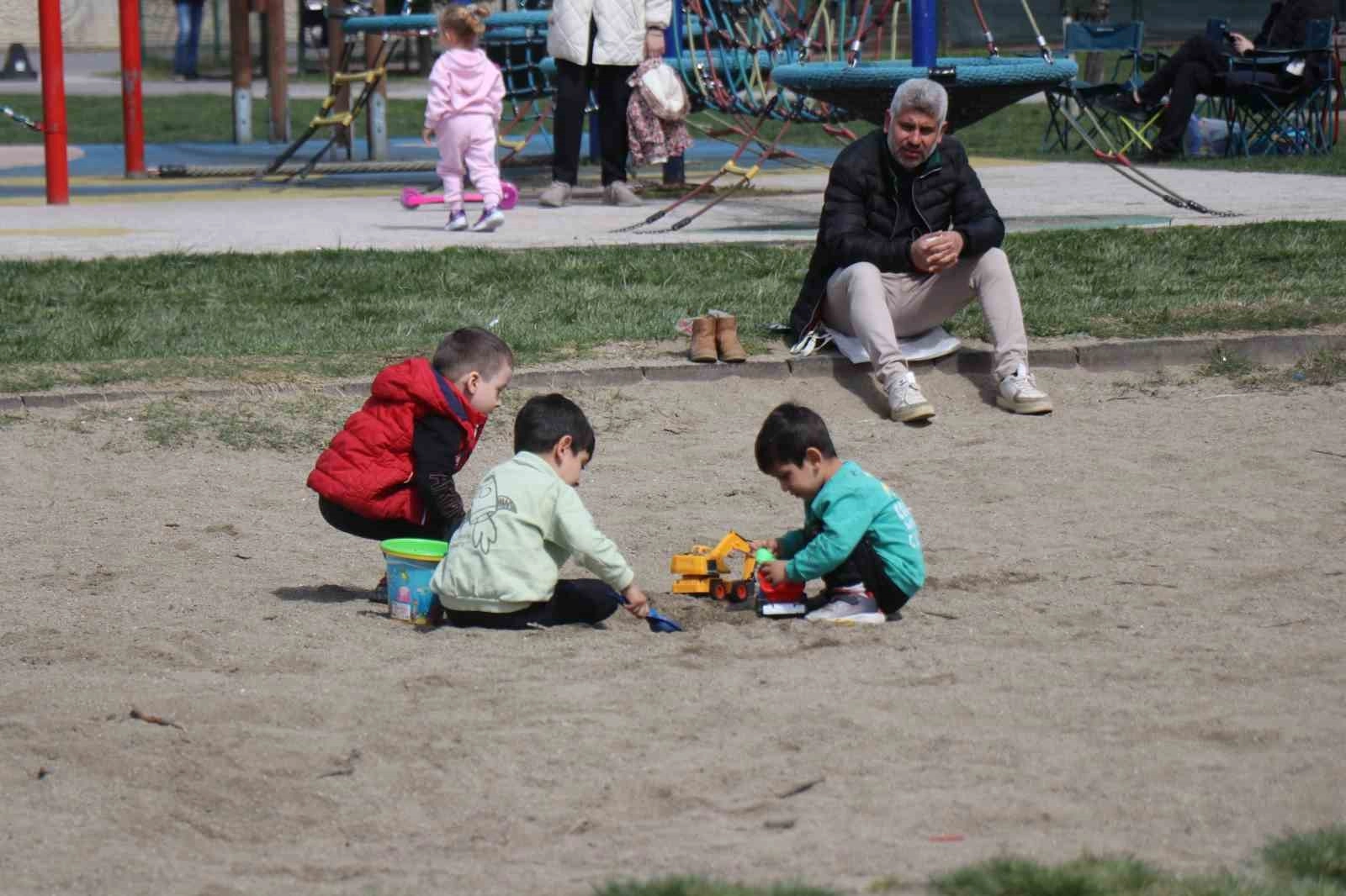 Sakarya'da hafta sonu güneşli havanın tadını çıkartmak isteyen bazı vatandaşlar soluğu yeşil alan ve parklarda aldı. Şehrin Aziz Duran Parkı'na adeta akın eden vatandaşlardan bazıları banklarda oturarak, bazıları yürüyüş yaparak bazıları da çocuklarıyla eğlenerek sıcak havanın tadını çıkardı. Ailesiyle hafta sonunun keyfini çıkaran Yusuf Hızlı, "Havaları ısınması hem bizim için hem de çocuklar için iyi oldu. Ramazan ayında olması daha iyi oldu, zaman geçiriyoruz. Genel de sıcak havalarda hafta sonları piknik tarzı etkinlikler yapıyoruz. Havaların ısınması toplumsal alanları kalabalıklaştırıyor" dedi.