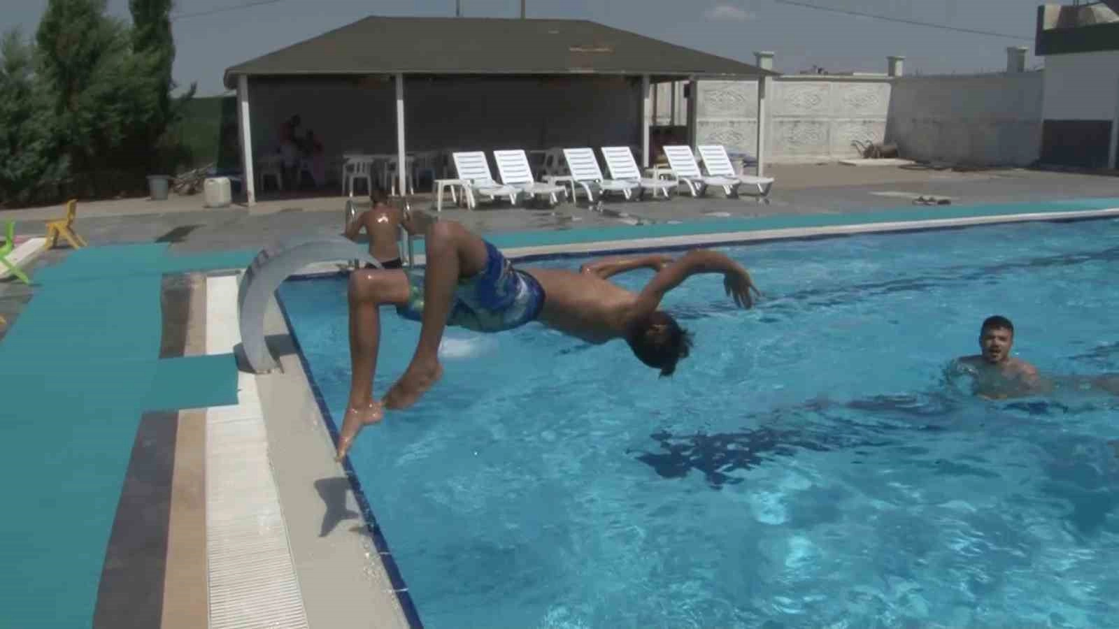 Hava sıcaklığının etkili Adıyaman'da gençler çareyi havuzlarda yüzerek serinlemekte buluyor.