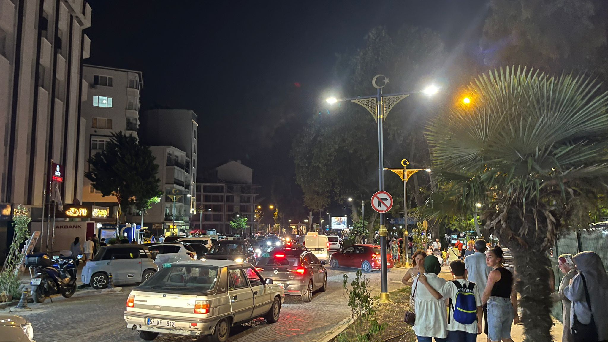 Sinop’un en işlek caddelerinden olan Atatürk Caddesinde araç ve insan yoğunluğundan trafik zaman zaman durma noktasına geldi. Gündüz denizde, akşamları da çay bahçeleri başta olmak üzere park ve sahil kenarlarını dolduran vatandaşlar tatilin keyfini yaşadı. Öte yandan sıcak havadan bunalan vatandaşlar bir nebze olsun serinlemek için dondurma dükkanları önünde kuyruk oluşturdu.
