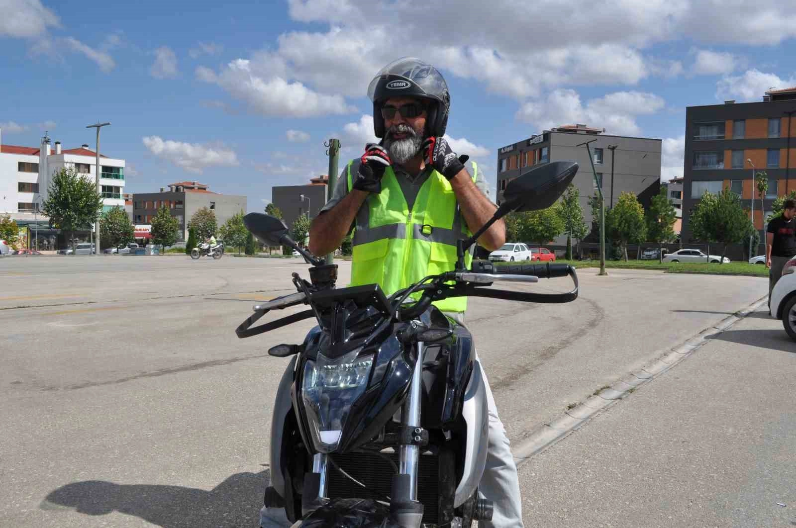 Eskişehir'de yüksek hava sıcaklığı nedeniyle terledikleri gerekçesiyle ekipmanlarını takmayan motosiklet sürücülerini uyaran sürücü kursu öğretmeni Halil İbrahim Hiçyılmaz, "Düşerken genelde ilk önce kafayı ya da çeneyi vuruyorsunuz ve ilk önce elimizi koyuyoruz. O açıdan kask ve eldiven çok önemli" dedi.