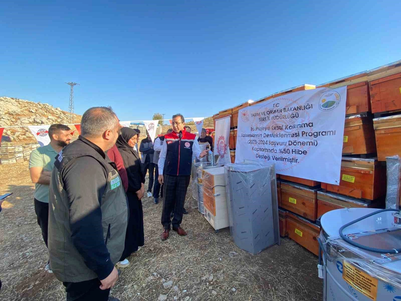 Tarım ve Orman Bakanlığı Kırsal Kalkınma Yatırımlarının desteklenmesi programı kapsamında Siirt'te arıcılara yüzde 50 hibe ile ekipman dağıtıldı.