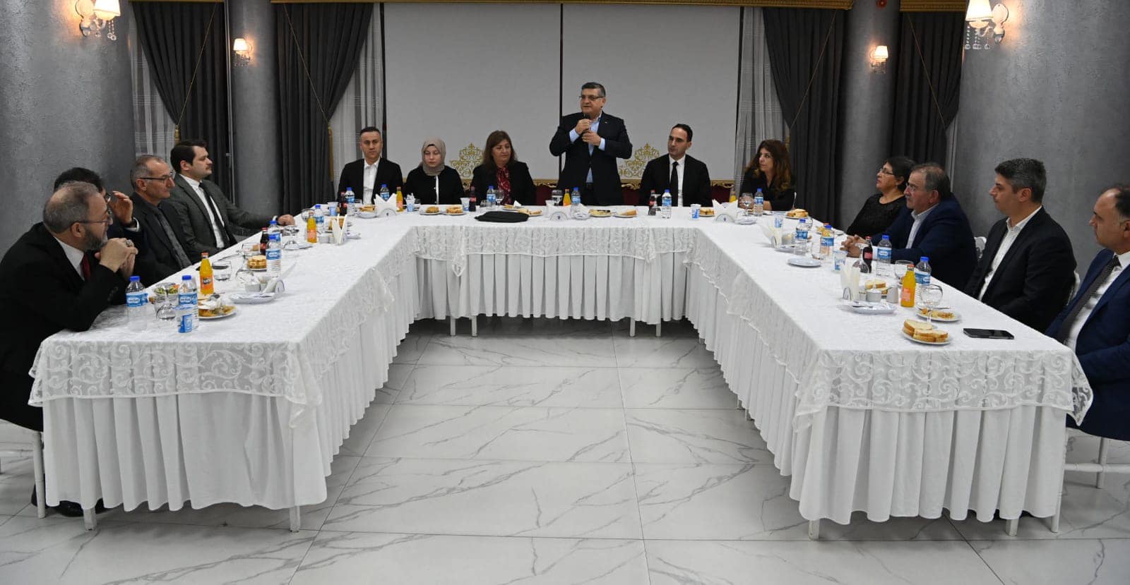 Sinop Valisi Dr. Mustafa Özarslan ve Eşi Reva Beray Özarslan nin ev sahipliğinde gerçekleşen programa, Cumhuriyet Başsavcısı Mesut Pektaş, Sinop Üniversitesi Rektör Vekili Prof. Dr. Muhitdin Yılmaz, Vali Yardımcısı Ali Osman Bulat, Sinop Şehit ve Gazi Aileleri Yardımlaşma ve Dayanışma Derneği Başkanı Mehmet Özgen, Kurum Müdürleri ve çalışanlar katıldı.