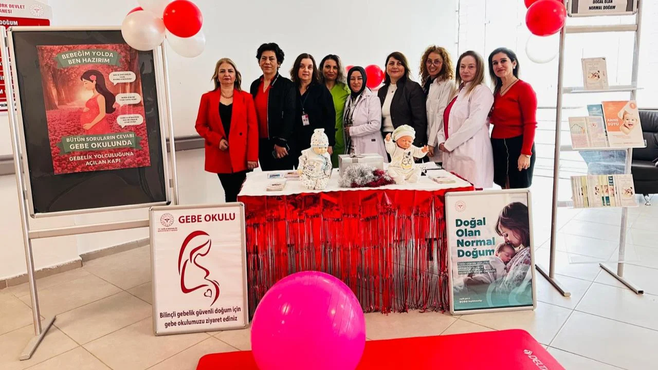 Hastanenin poliklinik 2. katında Gebe Okulu hemşireleri tarafından açılan stantta, anne adaylarına gebelik süreci, doğuma hazırlık eğitimi ve hastanede sunulan hizmetler hakkında bilgilendirme yapıldı.