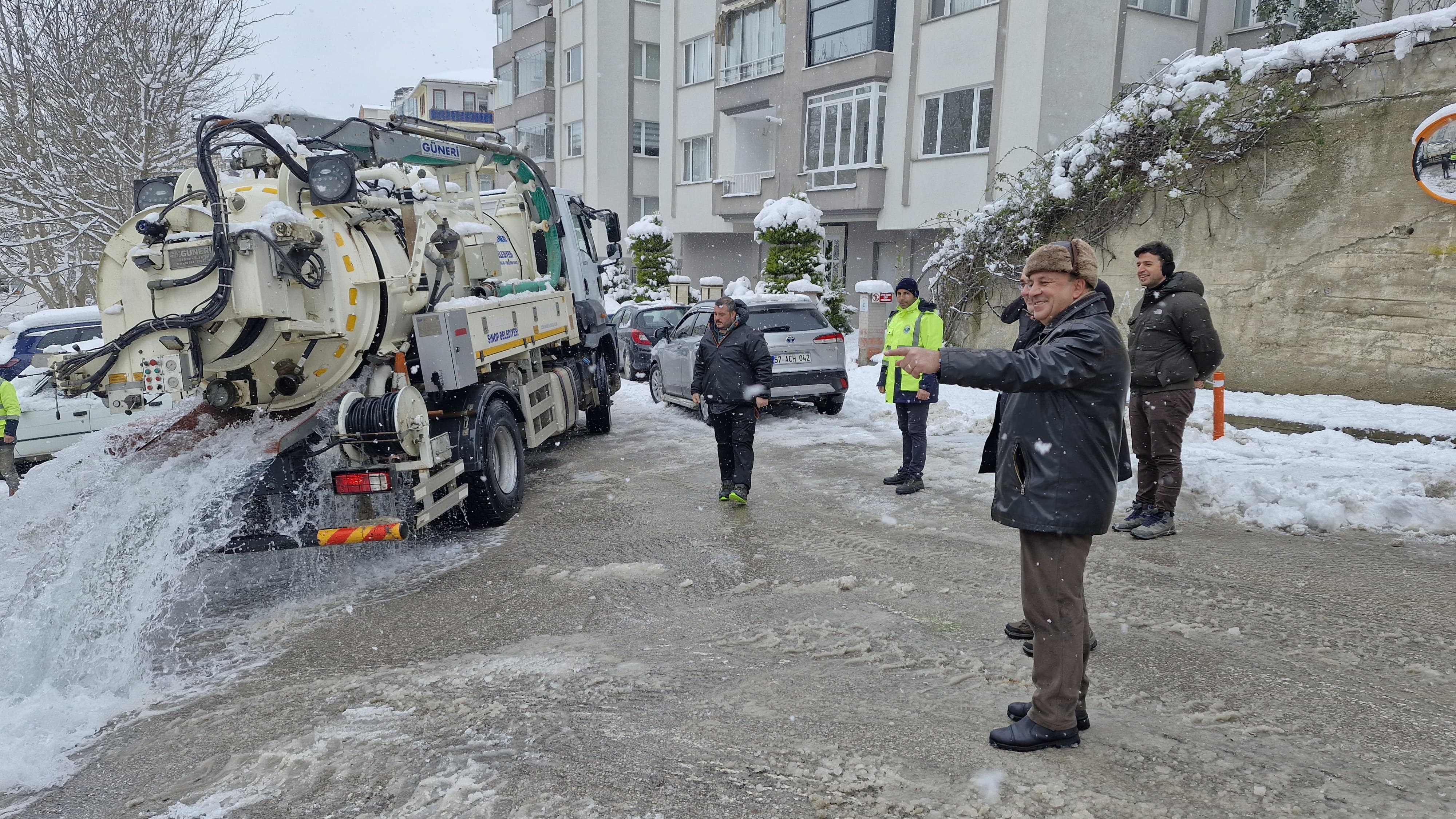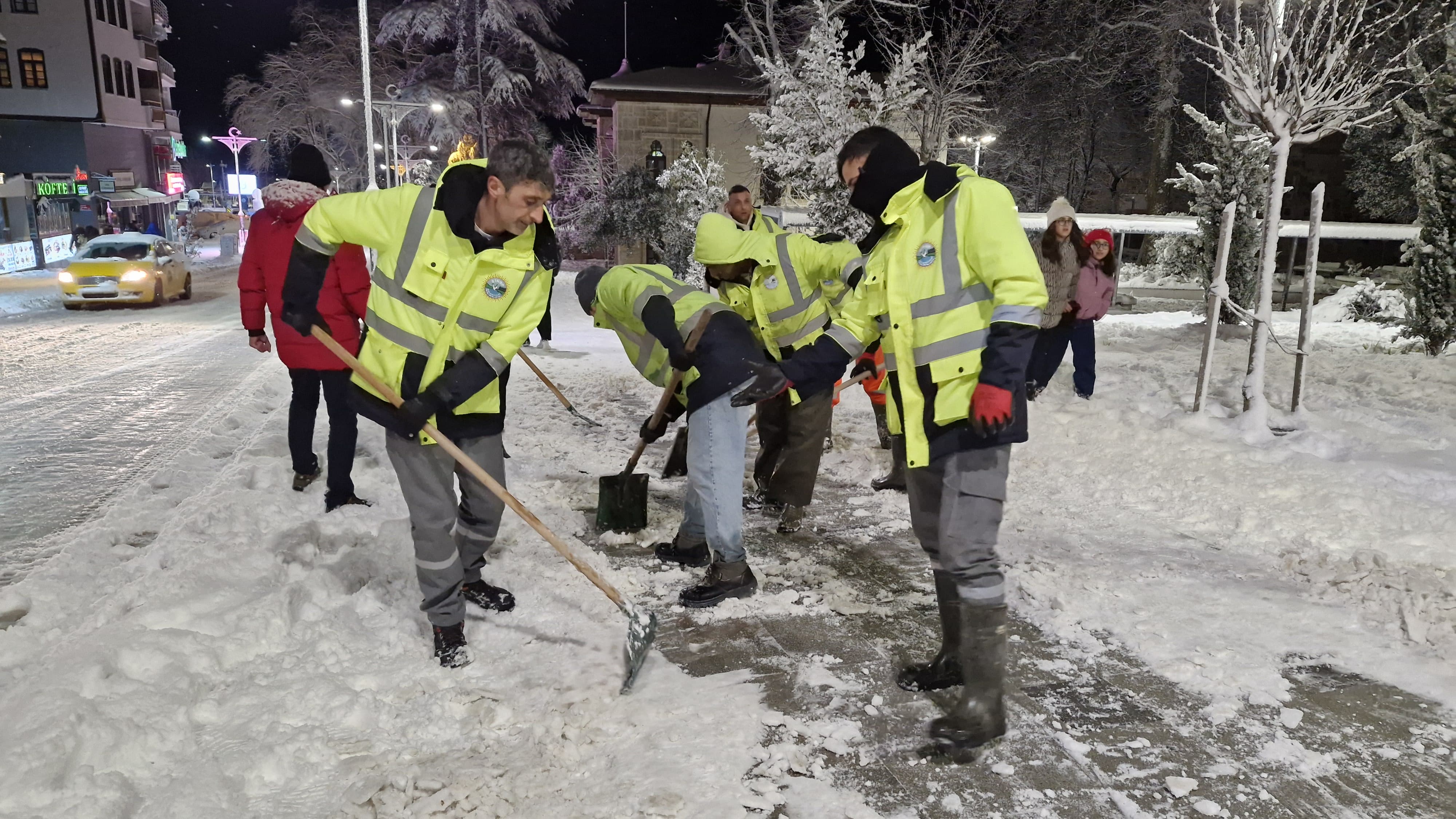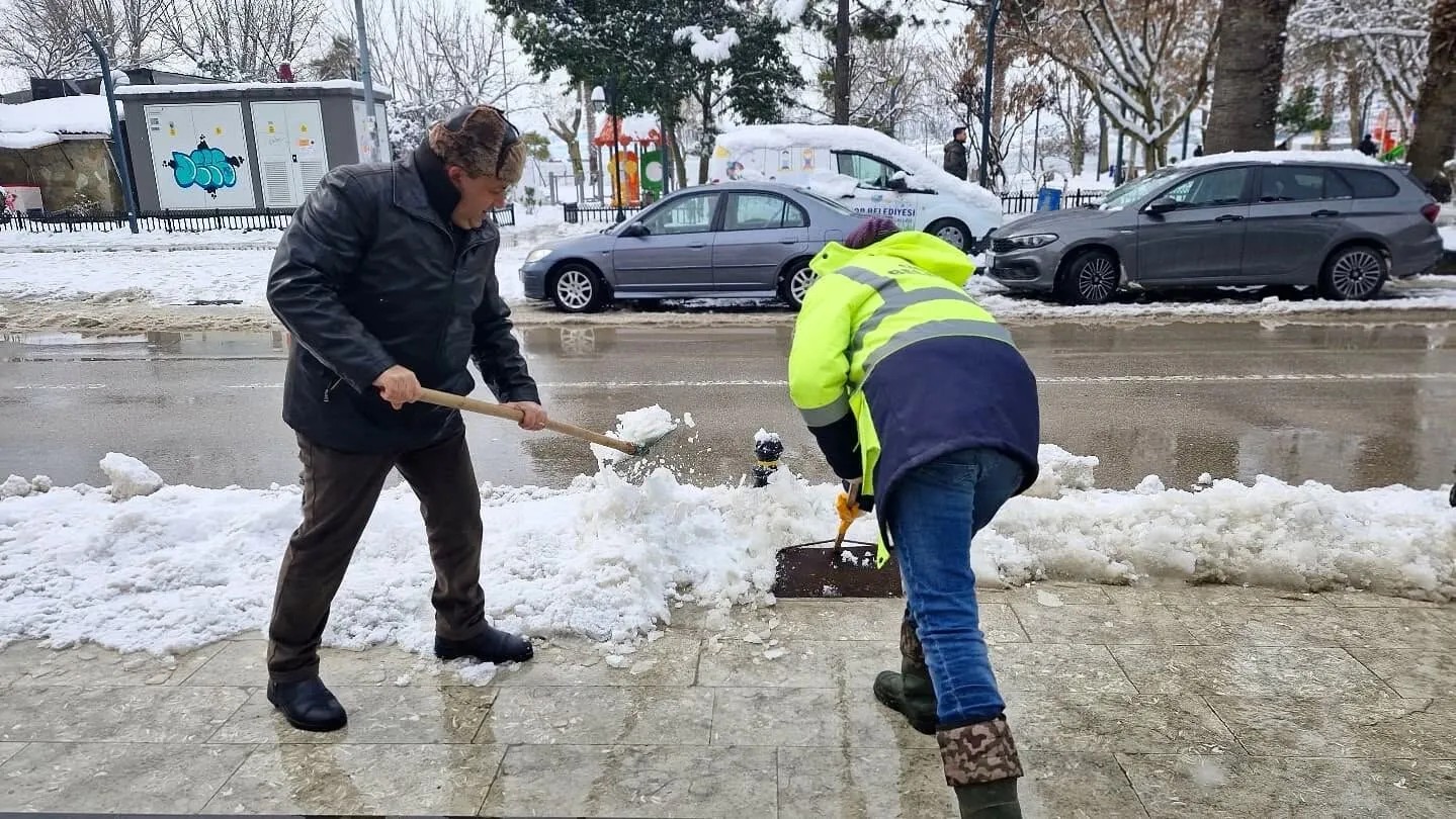 Başkan Gürbüz, belediye çalışanlarına destek vererek, kar temizleyen işçilere kürekle yardımcı oldu. Belediye ekipleri, vatandaşların kar yağışından en az şekilde etkilenmesi ve trafik güvenliğinin sağlanması amacıyla aralıksız olarak yol açma ve tuzlama işlemleri gerçekleştiriyor.