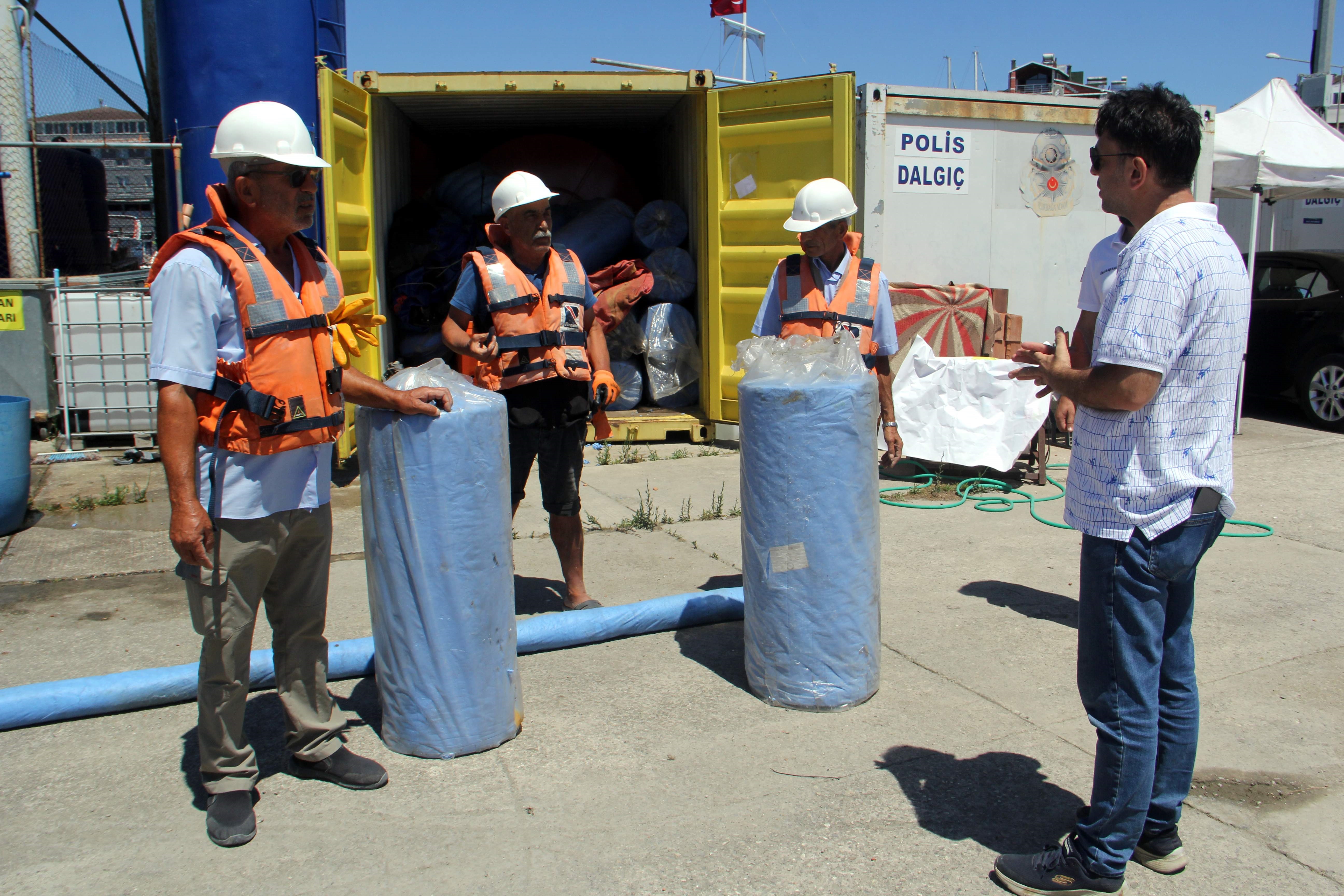 Hava muhalefeti nedeniyle Sinop Liman sahasında gerçekleştirilen tatbikatta, liman görevlilerine olası gemi kazası anında neler yapılması gerektiği konusunda bilgi verildi.