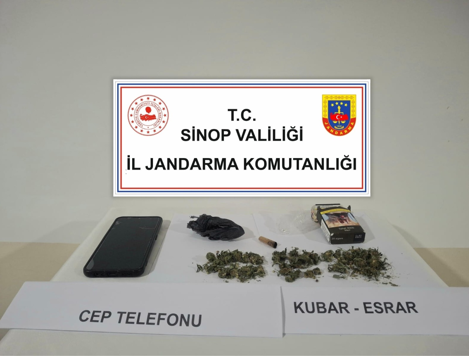 Sinop İl Jandarma Komutanlığınca Uyuşturucu ve uyarıcı madde satıcıları ile mücadeleye yönelik yapılan çalışmalar kapsamında, Erfelek ilçesinde bir şahsa ait araçta ve ikametinde yapılan aramada 10 gram Esrar maddesi, 1 adet uyuşturucu kullanma aparatı ve 1 adet cep telefonu ele geçirildi. Olay ile ilgili yakalanan 1 şüpheli hakkında adli işlemler başlatıldı.