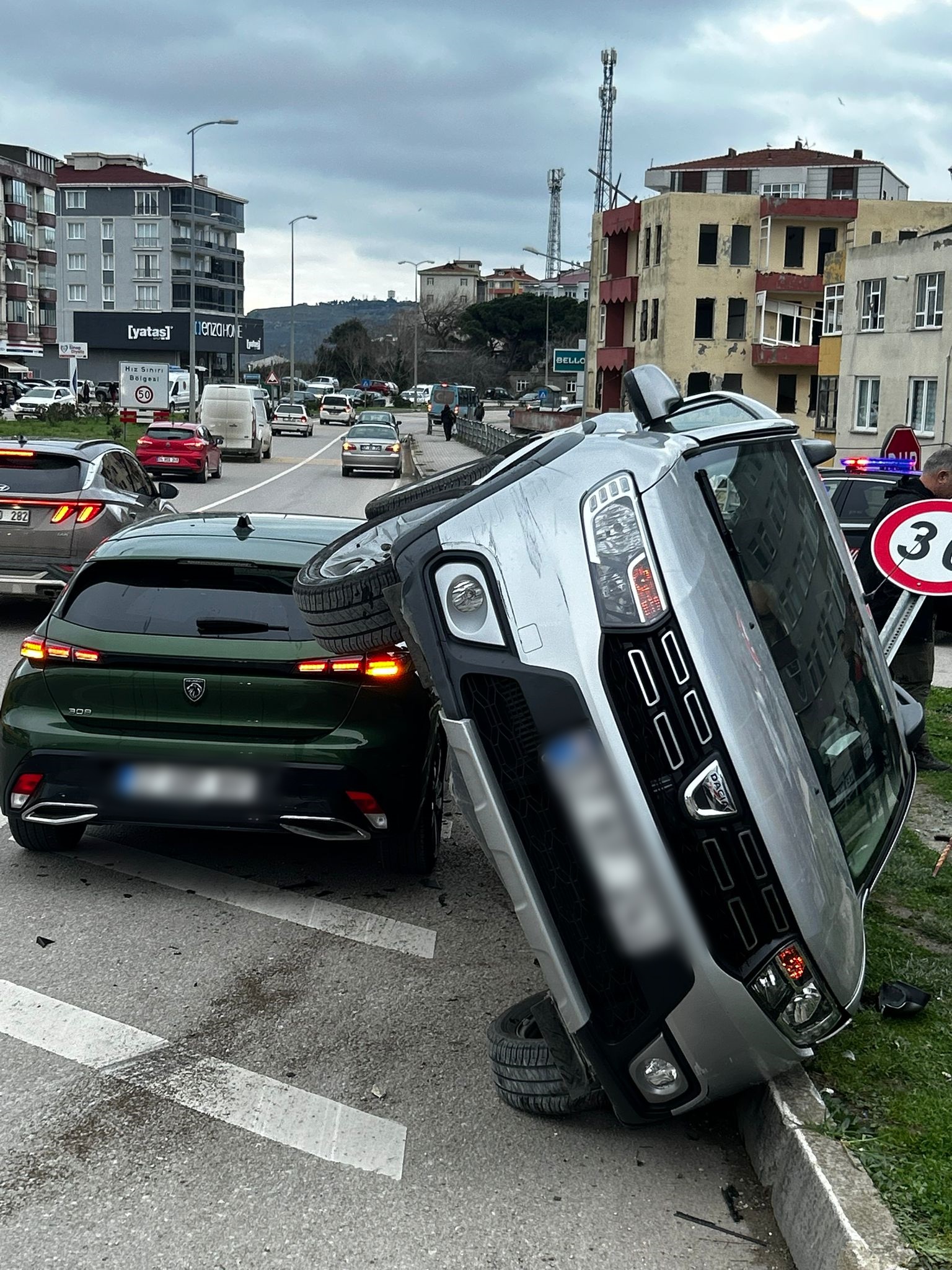 Kaza, saat 16.40 sıralarında Gelincik Mahallesi Pervane Yolu üzerinde meydana geldi. Edinilen bilgiye göre, 57 KF... plakalı Gelincik yol ayrımından dönüş yapmak istediği sırada Sinop'a doğru hareket eden 57 ABP...plakalı otomobil ile çarpıştı. Kaza sonucu refüje çıkarak yan dönen 57 KF... plakalı otomobil sürücüsü kaza sonrası otomobilde mahsur kaldı. Olay yerine sevk edilen ekipler mahsur kalan sürücüyü çıkarmak için çalışma başlattı. Ekiplerin hızlı müdahalesiyle araçtan çıkarılan sürücü Sinop Atatürk Devlet Hastanesine kaldırıldı. Kazaya karışan araçlar ise çekici yardımıyla yoldan kaldırıldı.