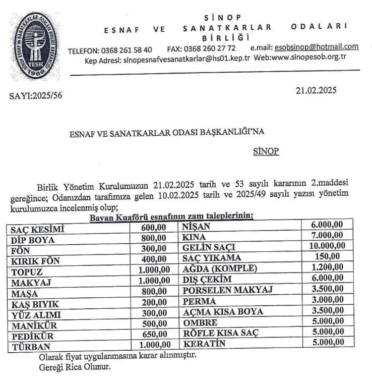 Maliyetlerin artması ve birçok şeye zam gelirken, bayan kuaförlerinde de fiyat listesinde güncellemeye gidildi.Yeni gelen zamlarla birlikte saç kesim ücreti 600 TL olurken, Fön 300 TL, manikür 500, pedikür 650 TL, dip boyası 800 TL gelin saçı 10000 TL oldu.