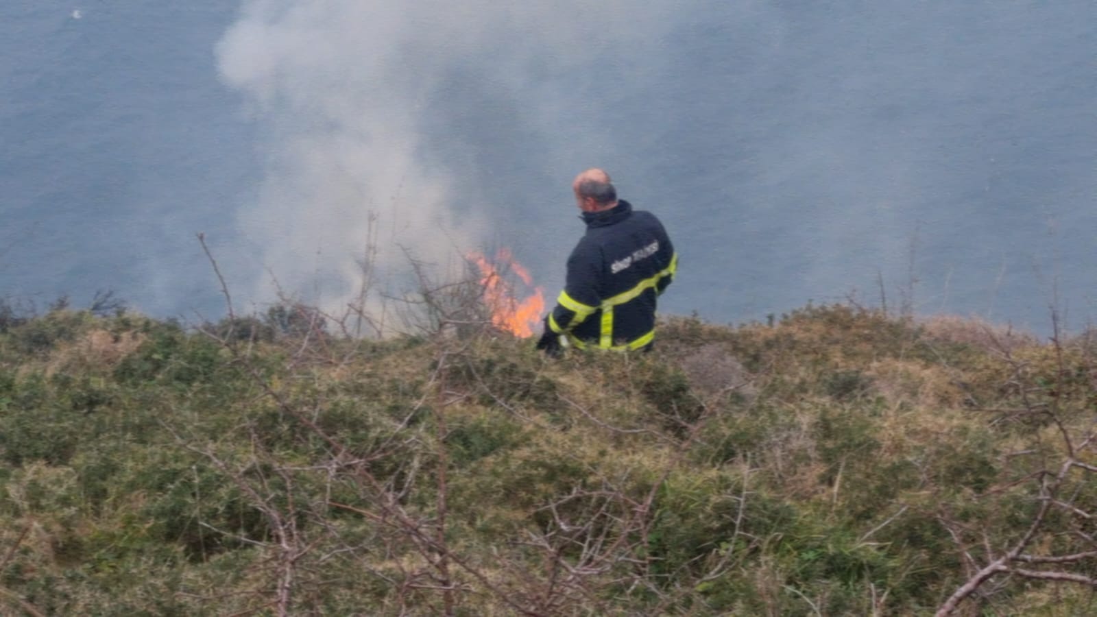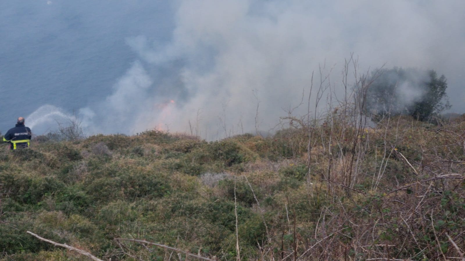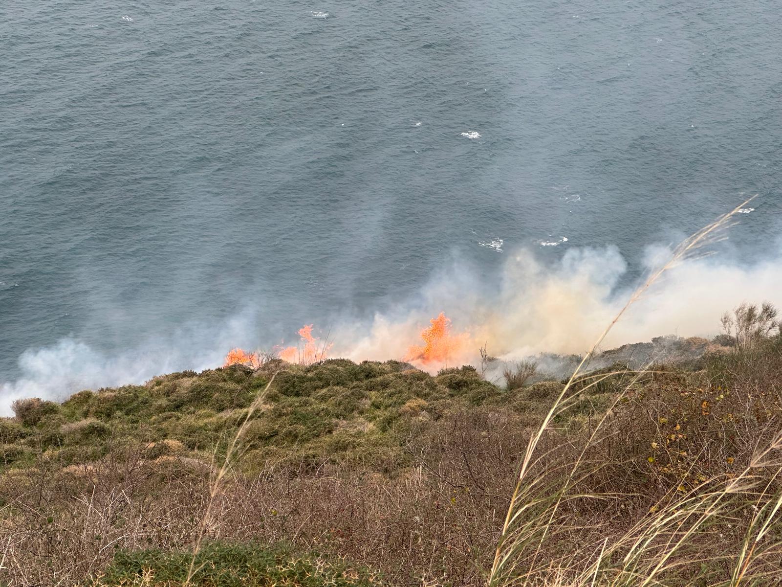 Sinop Adabaşı mevkiinde, makilik alanda yangın çıktı. İtfaiye ekipleri, yangına müdahale ediyor.