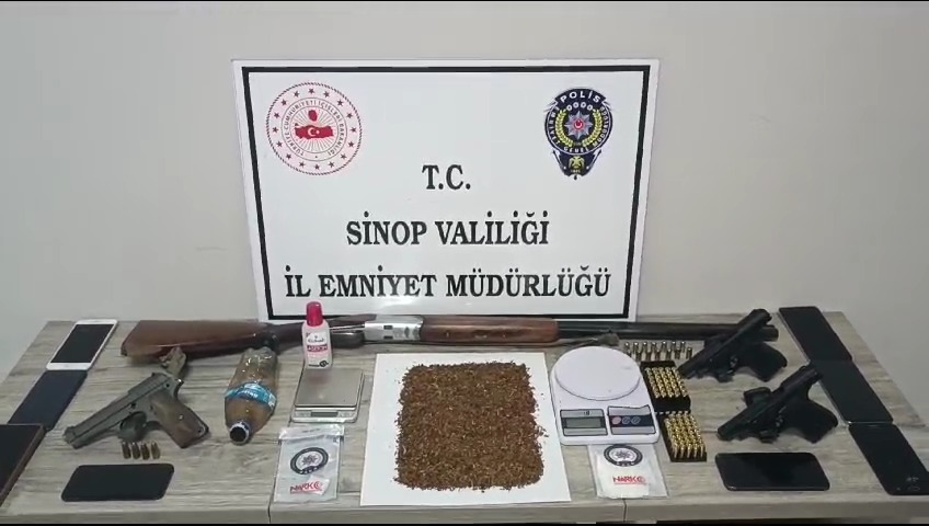 Sinop’un Gerze ilçesinde uyuşturucu madde ticareti yapan şahıslara yönelik Sinop Merkez Cumhuriyet Başsavcılığı koordinesinde, Narkotik Suçlarla Mücadele Şube Müdürlüğü ekiplerince yapılan kapsamlı çalışmalar neticesinde 17 şüpheli şahıs hakkında adli işlem başlatıldı. Yapılan operasyonlar kapsamında 209 gram sentetik kannabinoid (bonzai) maddesi, uyuşturucu madde yapımında kullanılan kimyasal çözücü, 2 adet hassas terazi, 1 adet uyuşturucu madde kullanma aparatı (kova), 3 adet tabanca, 1 adet av tüfeği, 2 adet tabanca şarjörü, 92 adet fişek, 8 adet cep telefonu ele geçirildi. Soruşturma kapsamında adli mercilere sevk edilen 6 şahıs tutuklanarak cezaevine teslim edildi.