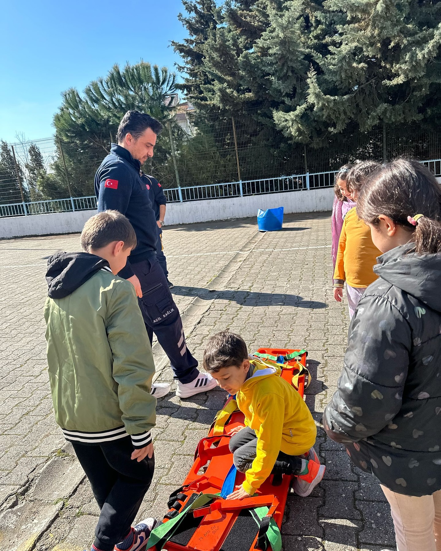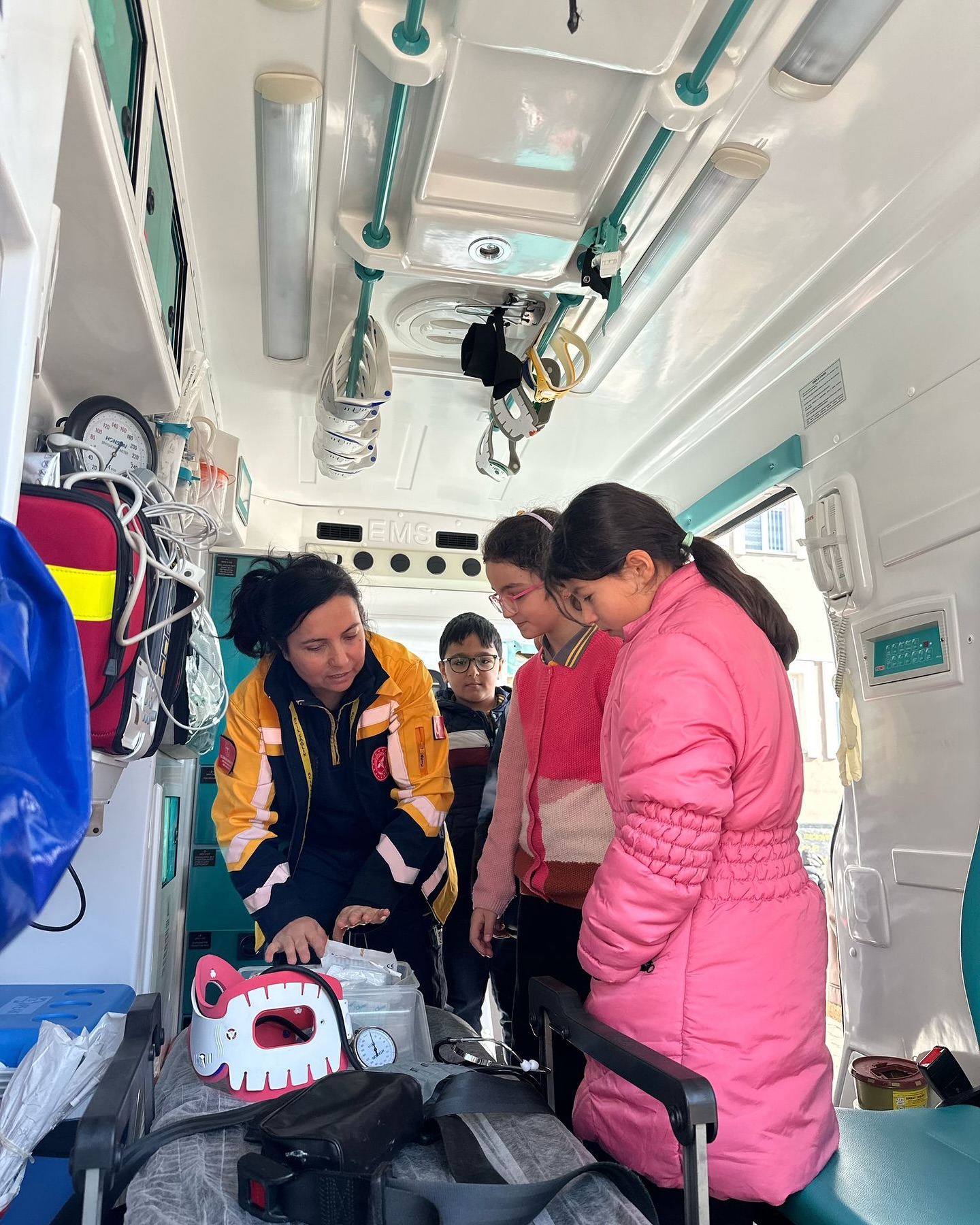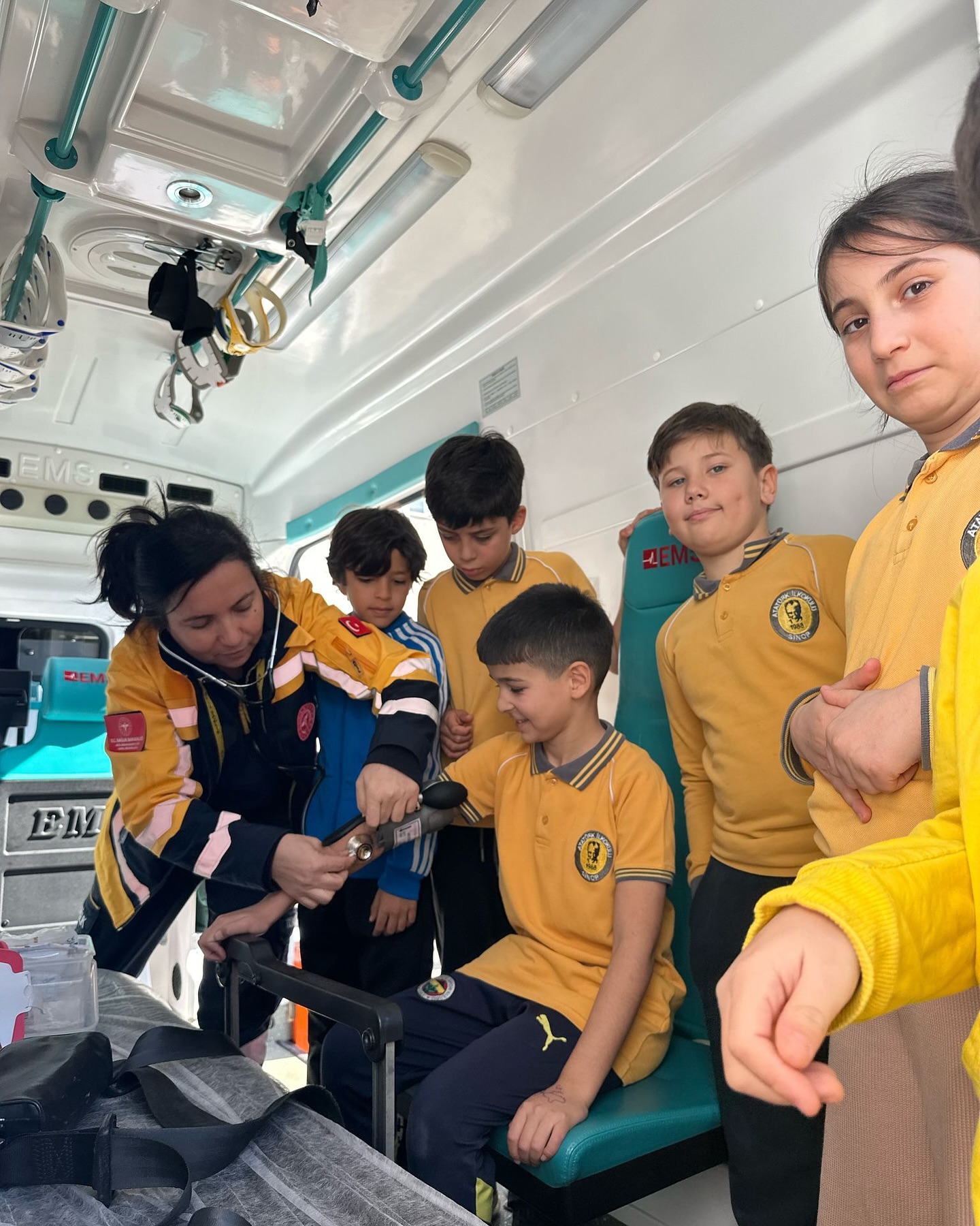Öğrencilere, 112 Acil Çağrı Merkezi’nin doğru kullanımı, ambulansların olay yerine ulaşma süreci ve acil sağlık ekiplerinin görevleri hakkında bilgilendirme yapıldı. Ayrıca, “Fermuar Sistemi ile Yaşama Yol Ver” kampanyası kapsamında, sürücülerin ambulanslara hızlı ve güvenli geçiş imkânı sağlamak için nasıl hareket etmeleri gerektiği anlatıldı. Bu sistemin, ambulansların vakalara daha hızlı ulaşmasını sağlayarak hayat kurtardığı vurgulandı.