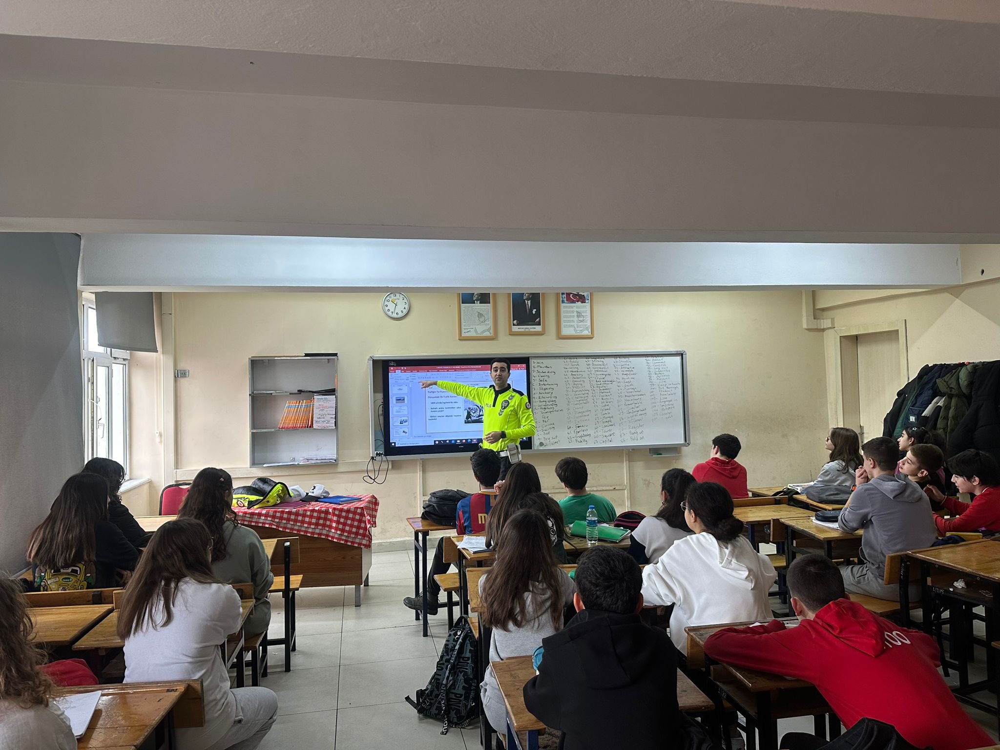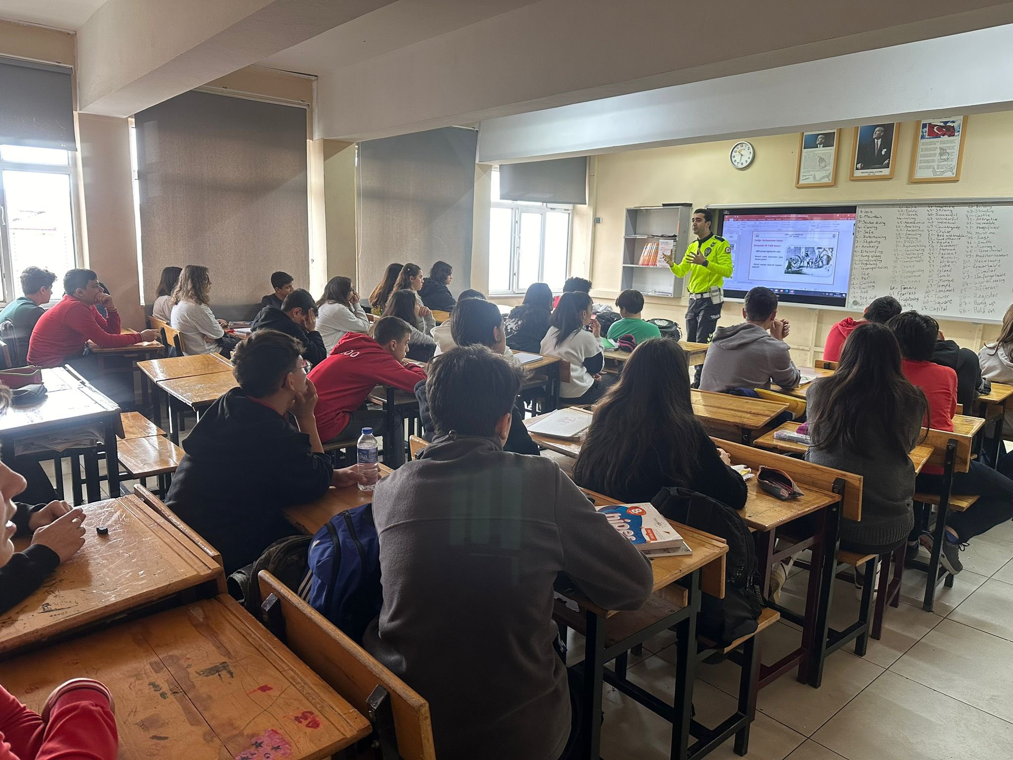 Sinop İl Emniyet Müdürlüğü Trafik Tescil ve Denetleme Şube Müdürlüğünce, Şehit Halil Özdoğru Ortaokulu öğrencilerine yönelik Temel Trafik Bilgisi, Trafik İşaret ve Levhaları, Okul Servis Araçlarında Güvenli Seyahat için Yapılması Gerekenler, Emniyet Kemeri ve Yaya Geçidi kullanımının trafikteki önemi konularında bilgilendirme yapıldı.
