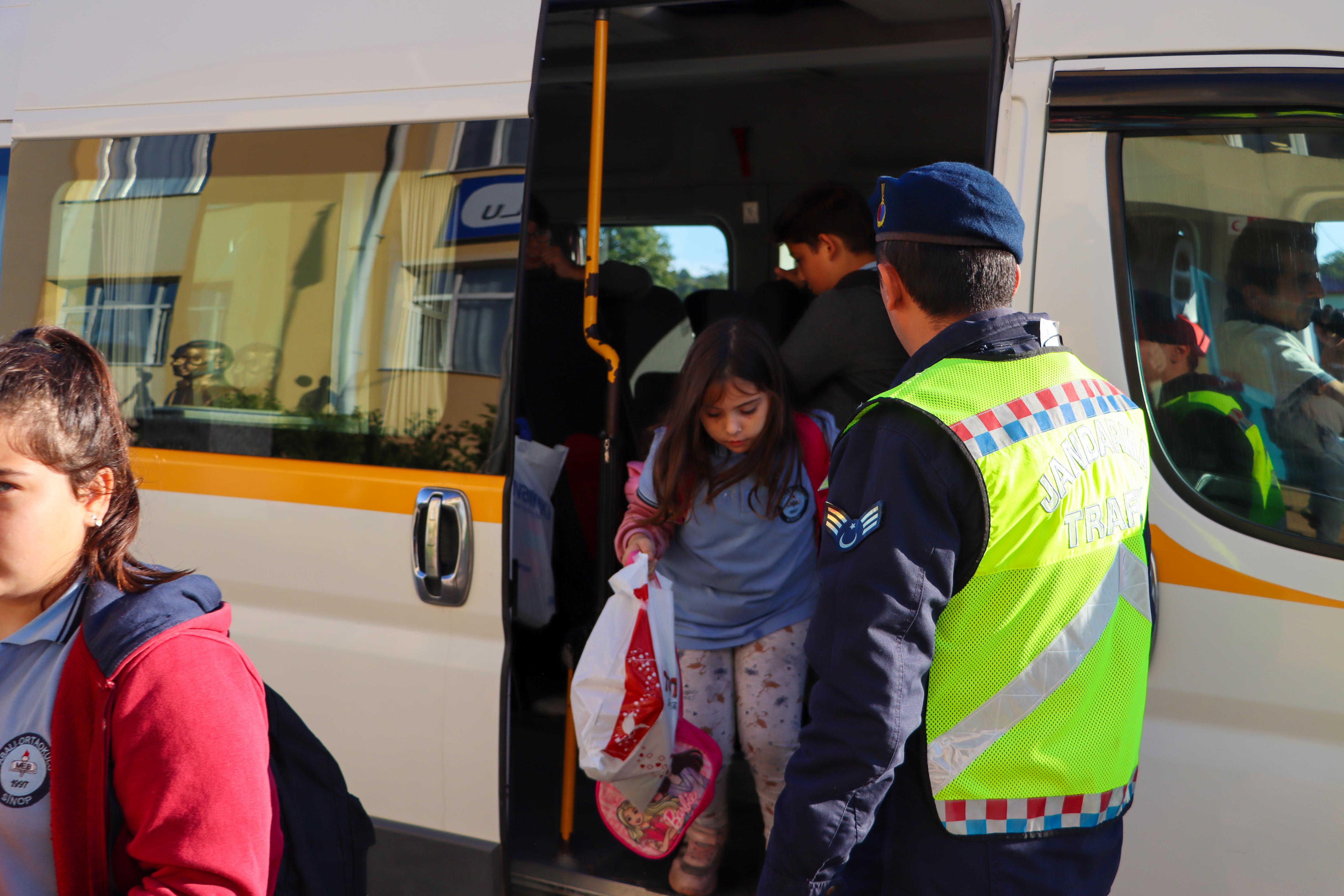Sinop İl Jandarma Komutanlığı’na bağlı trafik ekipleri, okul servis araçlarının karışabileceği trafik kazalarını önlemek ve öğrencilerin güvenli bir şekilde seyahat etmelerini sağlamak amacıyla kapsamlı bir trafik denetimi gerçekleştirdi.
