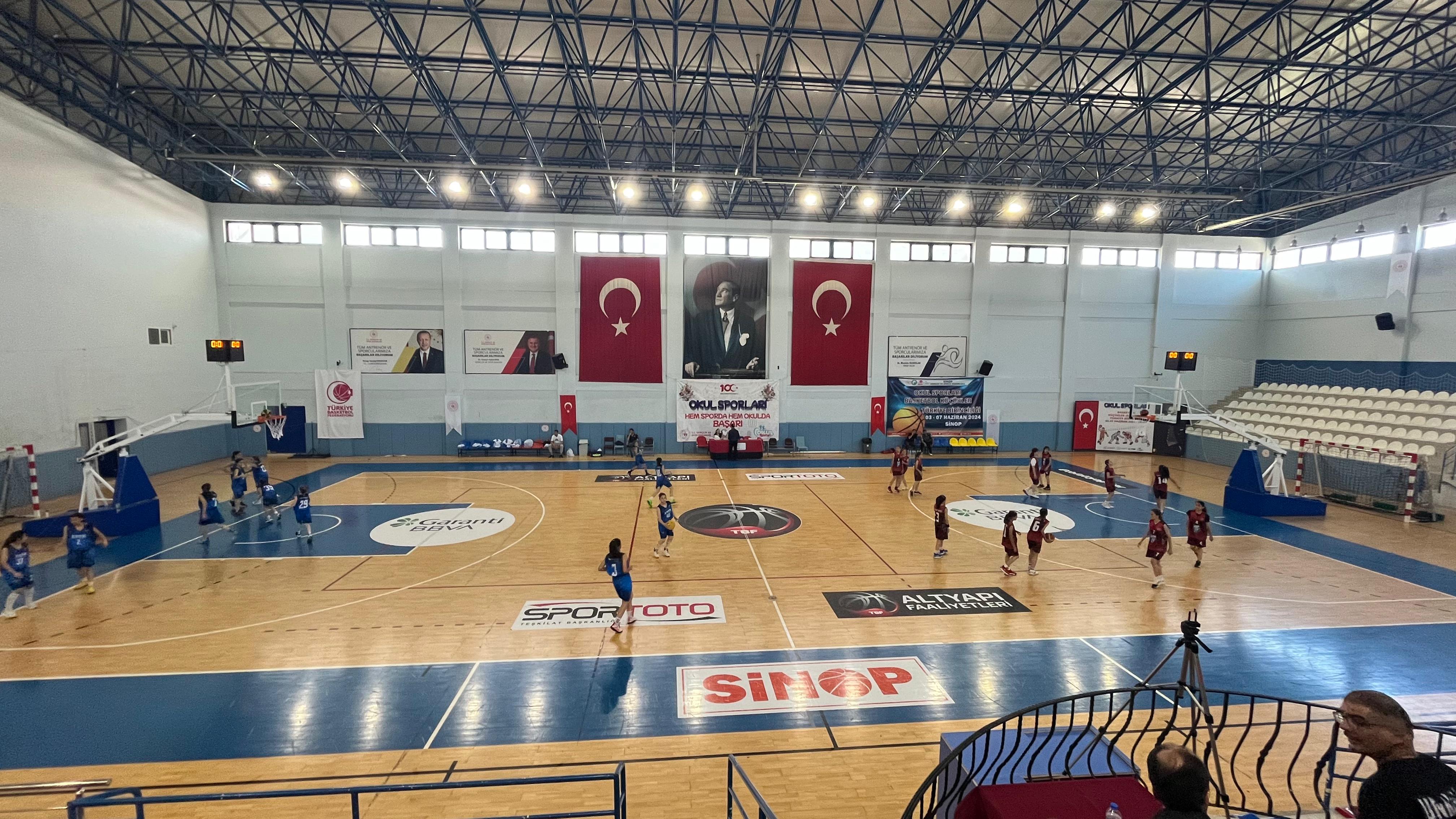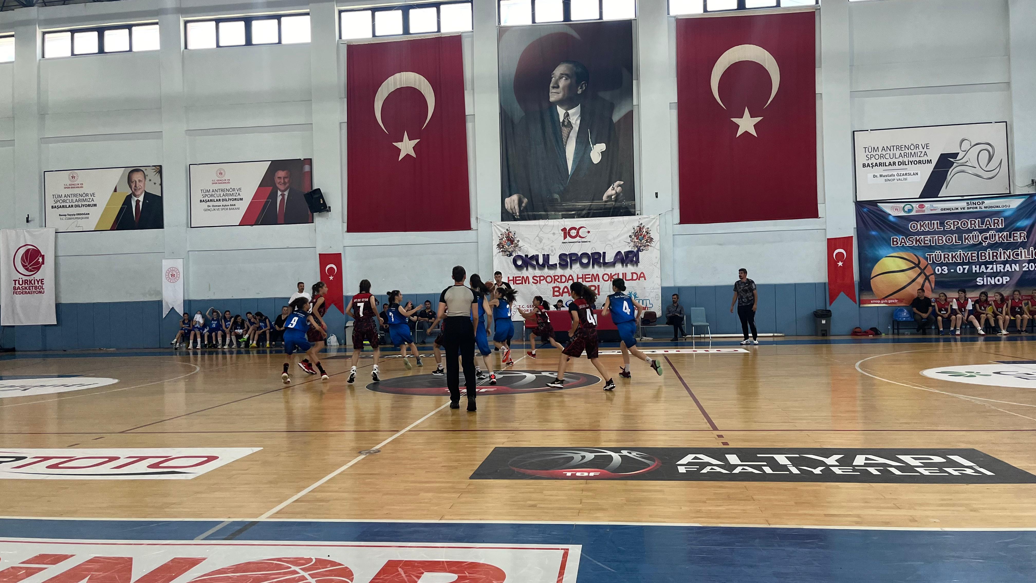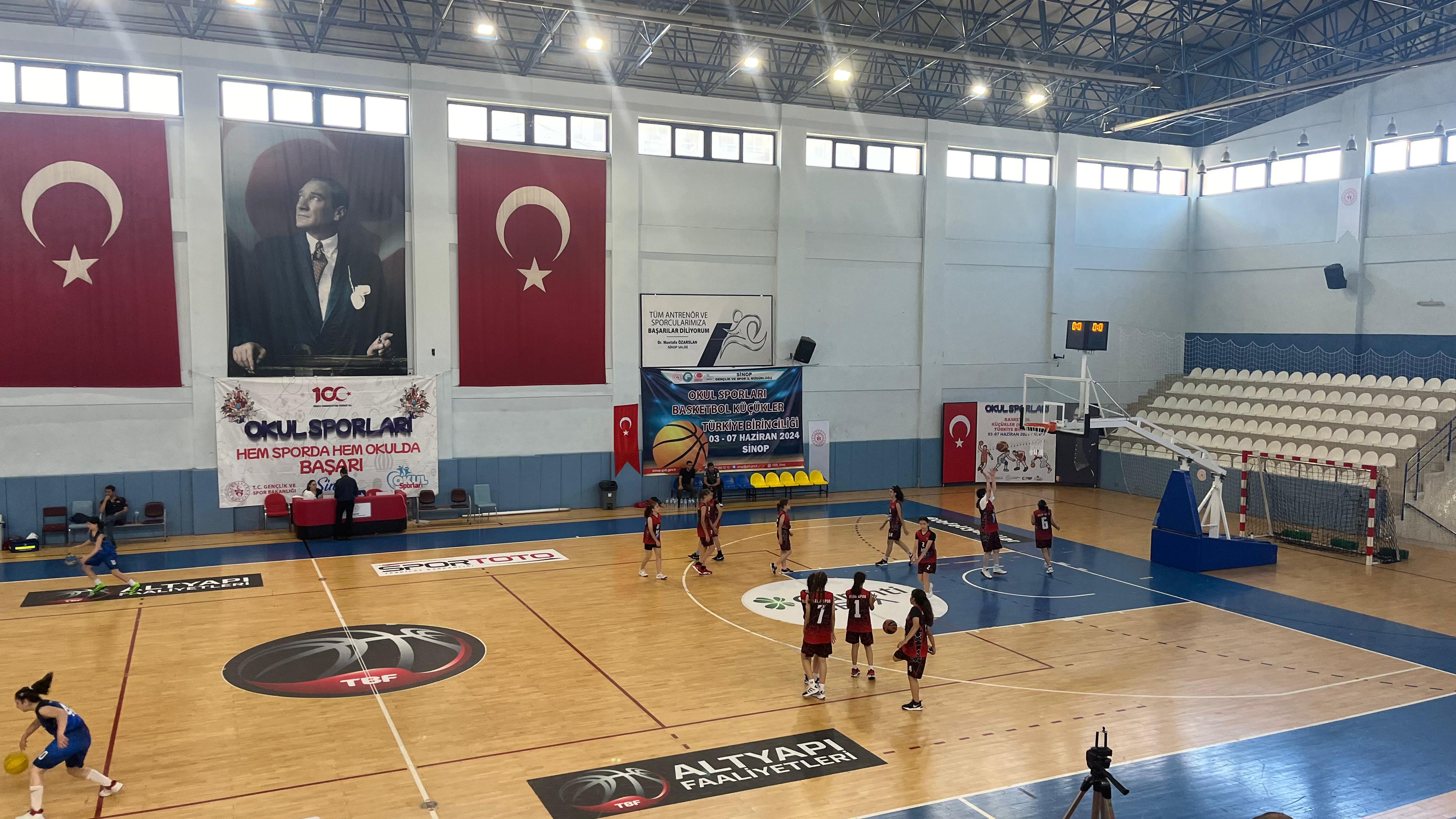Okul Sporları Basketbol Küçük Kızlar Türkiye Birinciliği Müsabakaları Sinop Sinop Kemalettin Sami Paşa Spor salonunda başladı.
