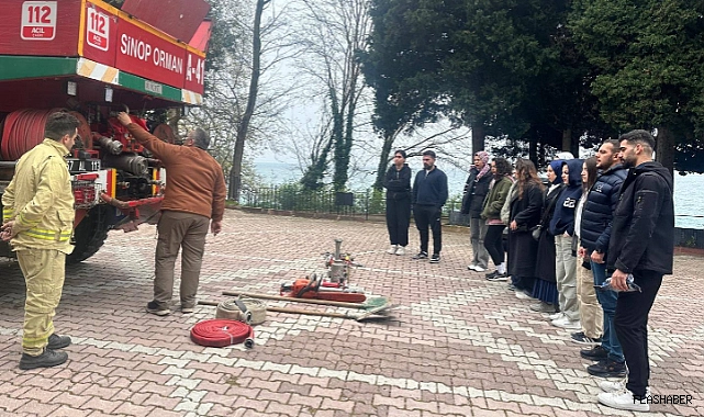 Sinop Orman Bölge Müdürlüğü Rahmi Demir Sosyal Tesislerinde, Sinop Üniversitesi Sağlık Hizmetleri Meslek Yüksekokulu Çevre Sağlığı Programı öğrencilerine yönelik gerçekleştirilen eğitimde, öğrencilere orman yangınlarının çıkış nedenleri, önlenmesi ve müdahale yöntemleri hakkında hem teorik hem de uygulamalı bilgiler aktarıldı.Eğitim programı sonunda düzenlenen saha uygulamasında, öğrencilere yangın söndürme ekipmanları tanıtıldı.