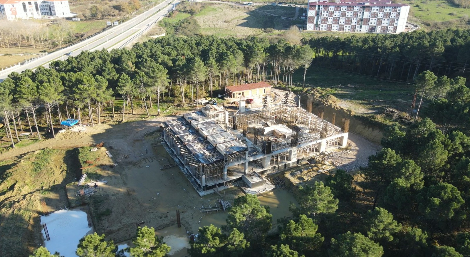 Yaklaşık 5000 metrekare alan üzerine inşa edilen ve 1700 kişinin aynı anda namaz kılabileceği büyüklükte yapımı sürdürülen Sinop Üniversitesi Yerleşkesi Camii, kültür sanat faaliyetlerinin yanı sıra öğrencilerin bilimsel çalışmalarına da ev sahipliği yapabilecek özel bir külliye olarak inşa ediliyor. 26 Temmuz 2024 tarihinde Diyanet İşleri Başkanı Sayın Prof. Dr. Ali Erbaş'ın katılımıyla gerçekleştirilen temel atma töreni sonrası inşaatına başlanan Sinop Üniversitesi Yerleşkesi Caminin kaba inşaat çalışmaları hızla devam ediyor. Devam eden çalışmalarla ilgili bilgi veren Sinop Üniversitesi Yerleşkesi Cami Yaptırma, Yaşatma ve Hizmet Derneği Başkanı Hakkı Bafralı, "Burası bildiğiniz üzere Sinop'un en yoğun lokasyonlarından birisi konumunda. Otogar, hastane ,15.000 üniversite öğrencisi ve Kyk yurtları ile bu bölge insan hareketliliğin en yoğun olduğu yerlerden birisi haline geldi. Bu ihtiyaca binaen Üniversitemiz, İl Müftülüğümüz, Derneğimiz ve hayırseverler vatandaşlarımızın destekleri ile 26 Temmuz 2024 tarihinde temelini attığımız Camimizin yaklaşık %60'ını tamamladık. Özellikle şunu vurgulamak istiyorum ki bu külliye tamamen hayırsever vatandaşlarımızın destekleri ile inşa ediliyor. Camimizin yaklaşık maliyetinin yüzde 51'ini karşılamayı taahhüt eden Ayancıklı iş insanı Sayın Mustafa Özdemir başta olmak üzere birçok hayırseverin destekleri ile camimiz bu noktaya geldi. Bundan sonraki süreçte de yapacak epeyce bir işimiz var. Bu süreci yine hayırsever vatandaşlarımızın destekleri ile tamamlayacağız. Burada özellikle şunu belirtmek istiyorum. Camimizin tüm Sinop'a hizmet verebilmesi Sinoplu vatandaşlarımızın bu külliyeye rahat bir şekilde ulaşabilmesi için özellikle Camimizi Ayancık yolu üzerine planladık. İnşaat süreci tamamlandığında İnşallah tüm vatandaşlarımız bu külliyeyi rahat bir şekilde kullanabilecekler. Ayrıca bu mekan sadece Cami olarak değil aynı zamanda bir külliye hüviyetinde olacak. İçerisinde kütüphane, toplantı salonları, çalışma odaları gibi birçok sosyal donatı alanları bulunacak. Bu muhteşem eser tamamlandığında İnşallah şehrimiz bir İbadet, Bilim ve Kültür Merkezi kazanmış olacak. Ben burada bizlerden desteklerini esirgemeyen Sayın Valimiz başta olmak üzere Üniversitemiz ve İl Müftülüğümüze ayrıca hayırsever İş İnsanı Mustafa Özdemir ve bu hayra ortak olan tüm hayırseverlere teşekkür ediyorum." dedi.