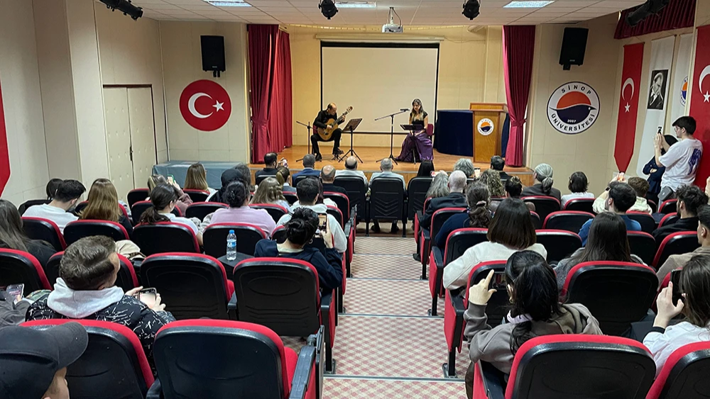 Gitar ve şan eşliğinde sergilenen eserler, salondaki izleyicilerden büyük alkış topladı. Program sonunda Rektör Yardımcısı Prof. Dr. Muhitdin Yılmaz, sanatçılara teşekkür ederek günün anısına belge takdim etti.