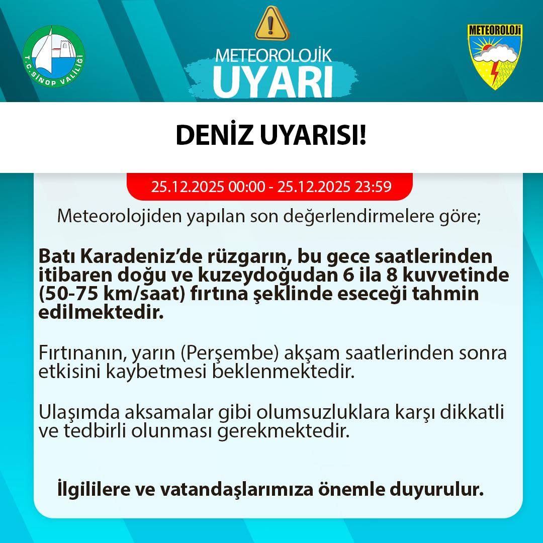 Sinop Valiliği, ulaşımda aksama ve olası olumsuzluklara karşı vatandaşları tedbirli olmaları konusunda uyardı.