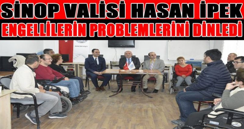 Sinop Valisi Hasan İpek, Türkiye Sakatlar Derneği Sinop Şubesini ziyaret ederek engellilerin problemlerini dinledi.