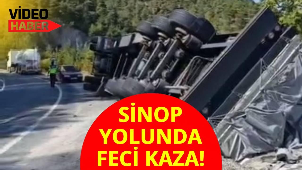 Sinop yolunda tır devrildi, sürücü yaralandı