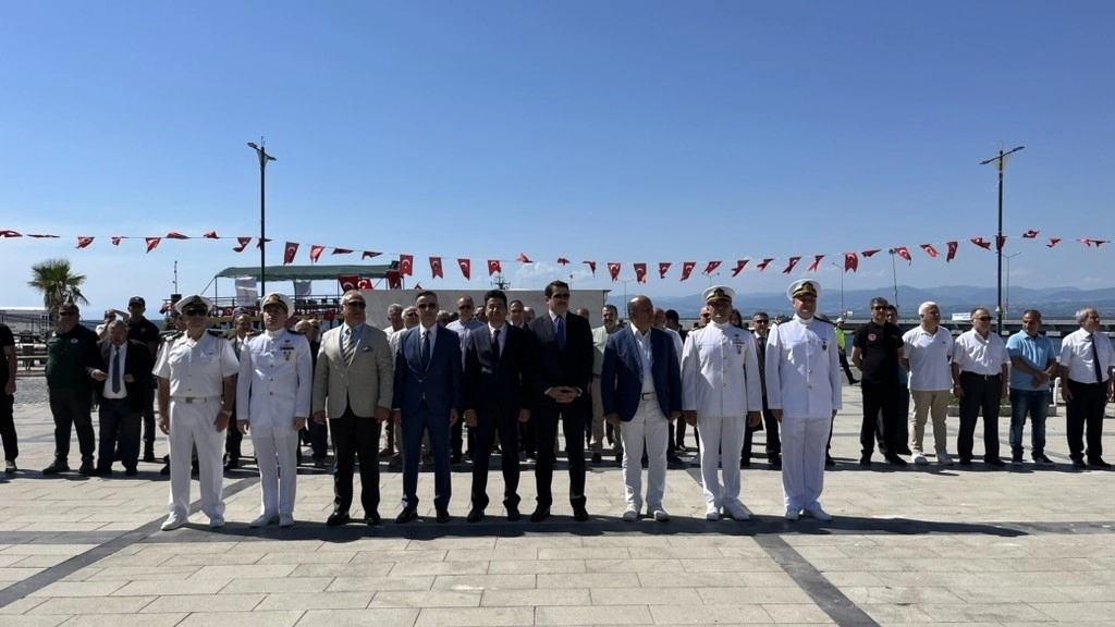 Sinop'ta, 1 Temmuz Denizcilik ve Kabotaj Bayramı kutlamaları çerçevesinde protokol tarafından denize çelenk bırakıldı.