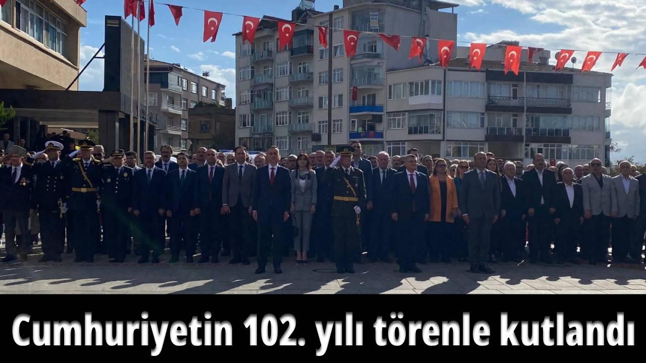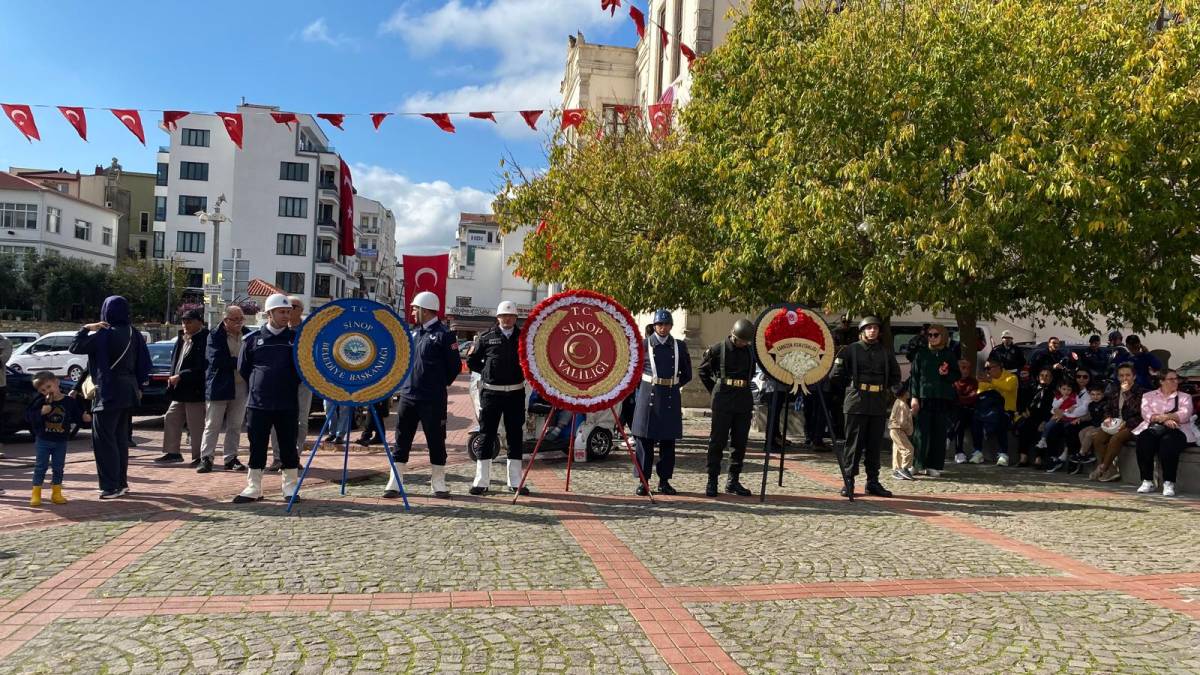 Cumhuriyetin 102. kuruluş yıldönümü dolayısıyla Sinop Hükümet Meydanı’nda gerçekleştirilen törende ilk olarak Sinop Valiliği, Garnizon Komutanlığı ve Sinop Belediyesi tarafından Atatürk Anıtı’na çelenk sunuldu.