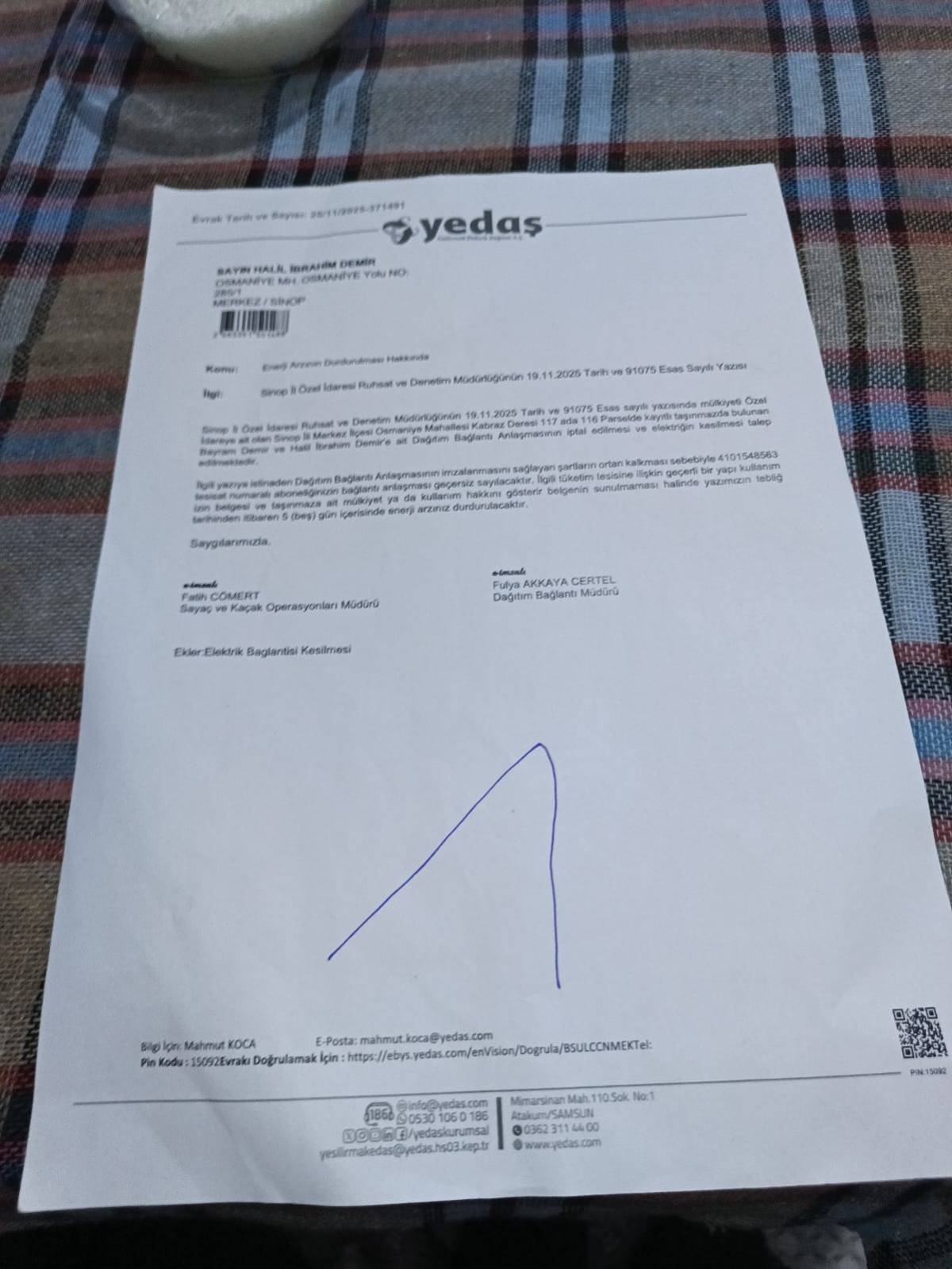İhbar üzerine bölgeye giden Sinopflashaber.com internet haber sitesinin imtiyaz sahibi gazeteci Osman Aksu, uzun yıllardır aynı evde yaşayan vatandaşın mağdur edildiğini savundu. Aksu, “Burada yıllardır oturan vatandaşın elektriğini kestiler. Kaçak ya da usulsüz kullanım gerekçesiyle değil, hiçbir açıklama yapılmadan kesildi. Vatandaşın bugüne kadar ödediği faturalar ve belgeler mevcut. Buna rağmen elektriği, suyu kesildi. Bu yanlışın bir an önce düzeltilmesini istiyoruz” dedi.