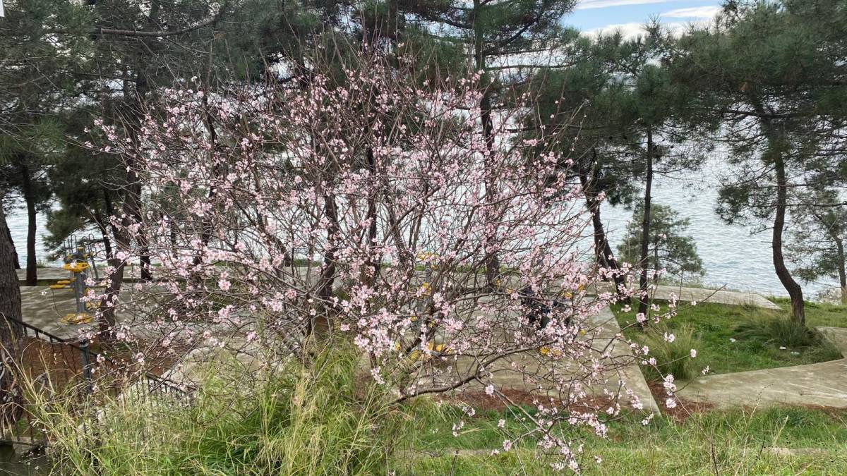 Deniz manzarası eşliğinde açan narin çiçekler, kartpostallık görüntüler oluştururken, kış mevsiminin ardından doğanın uyanışını simgeleyen çiçekler çevrede görsel bir şölen sundu. Son günlerde etkili olan ılıman hava, bitki örtüsünü de harekete geçirdi.