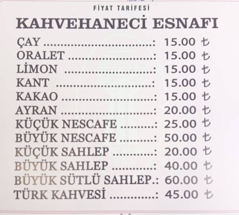 Belirlenen yeni fiyat tarifesi bugün itibarıyla yürürlüğe girdi. İlçe genelindeki çay ocakları ve kıraathanelerde güncel fiyat listesinin uygulanmaya başlandığı bildirildi.