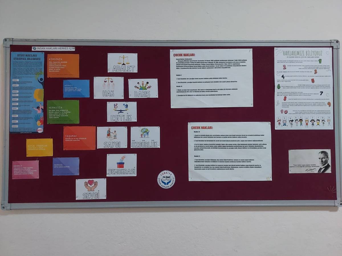 Hazırlanan panoda, çocuk haklarının önemi vurgulanırken, öğrencilerin bilinçlenmesine katkı sağlayacak bilgilendirici içeriklere yer verildi.