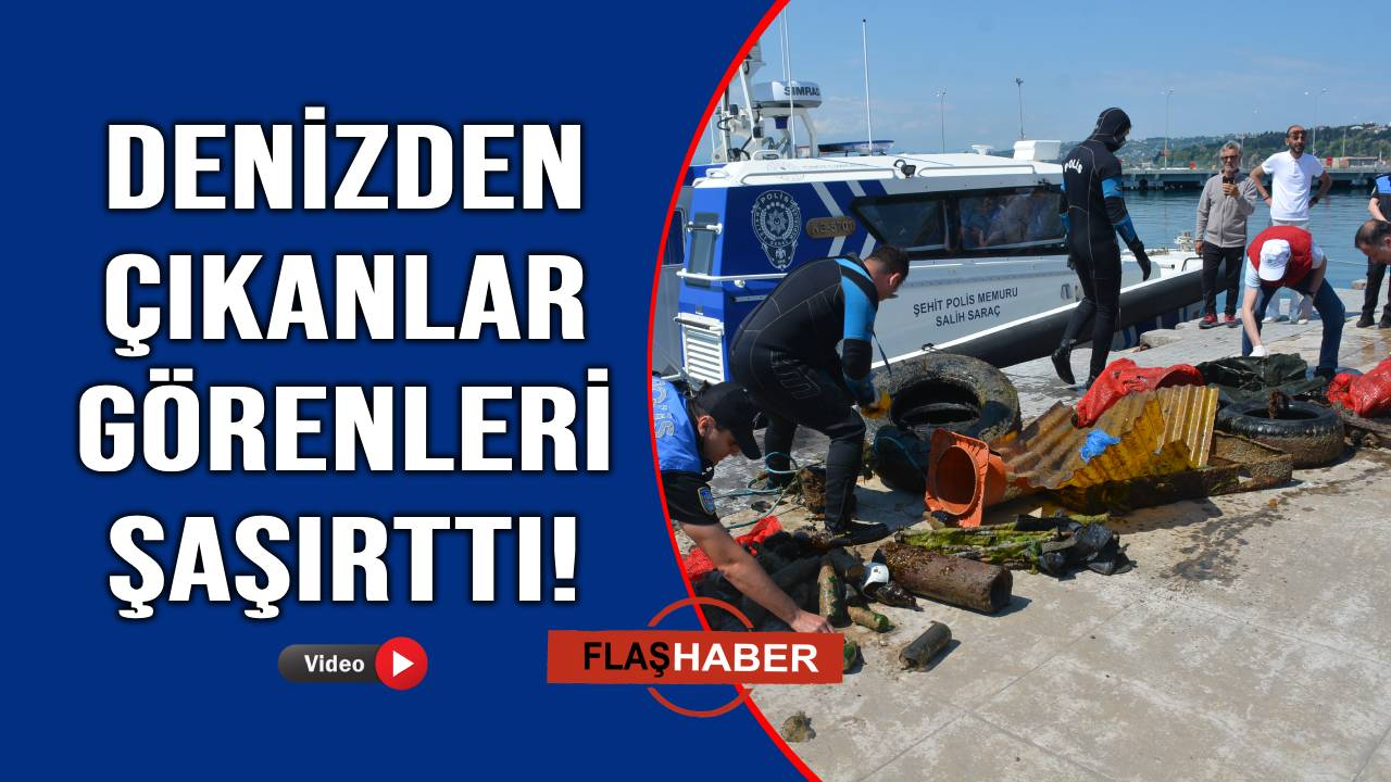 Denizden çıkarılan atık malzemeler bir süre sergilendikten sonra belediye ekiplerince alındı.
