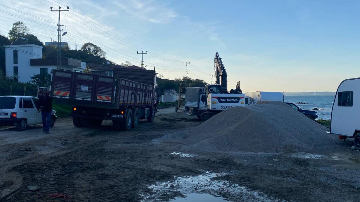 Sabah saatlerinden itibaren başlayan çalışmalarda iş makineleri güzergâh üzerinde kazı yaparken, kamyonlar da dolgu malzemelerini sahaya taşıyor.