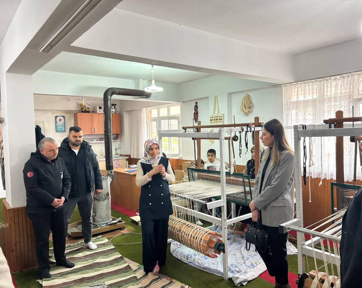 Ziyaret sırasında atölyede yürütülen çalışmalar hakkında bilgi alan Kaymakam Kandemir ve eşi, kadınlarla sohbet ederek üretim sürecini yerinde inceledi. Geleneksel el sanatlarından biri olan kilim dokumacılığının yaşatılmasının önemine dikkat çeken Kandemir, kadınların ürettikleri ürünlerle aile ekonomisine katkı sağlamasından memnuniyet duyduğunu ifade etti.