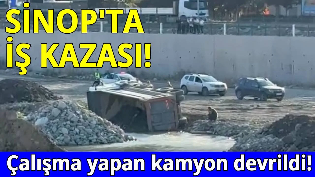 Sinop’un Ayancık ilçesinde, Ayancık Çayı üzerinde yürütülen bir çalışma sırasında bir kamyon devrildi.