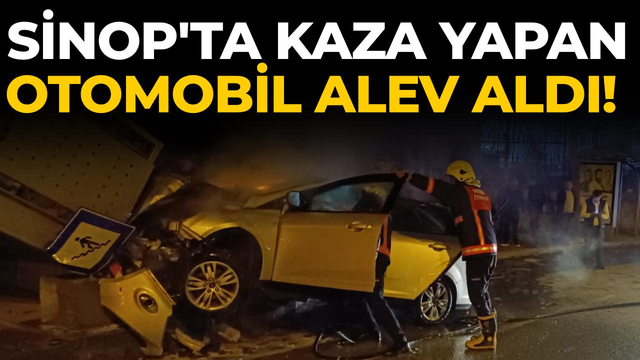 Olay, Boyabat Adnan Menderes Bulvarı'nda, hastane yakınında bulunan bir üst geçidin altında meydana geldi. 57 DV... plakalı otomobil, seyir halindeyken üst geçide çarparak kaza yaptı. Çarpmanın şiddetiyle büyük hasar gören otomobil, kısa süre içerisinde aniden alev alarak yanmaya başladı. Bu durum, araç içerisinde bulunan 4 vatandaşın araçta mahsur kalmasına neden oldu.
