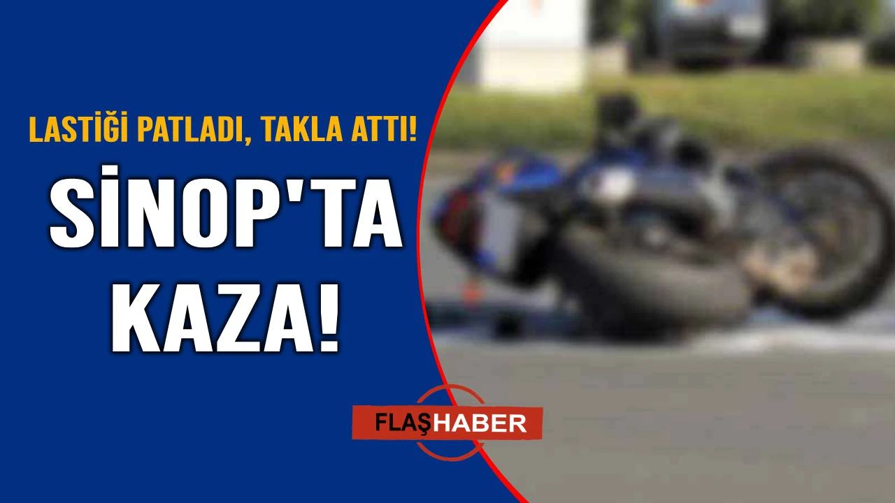 Sinop'ta lastiği patlayan motosiklet takla attı