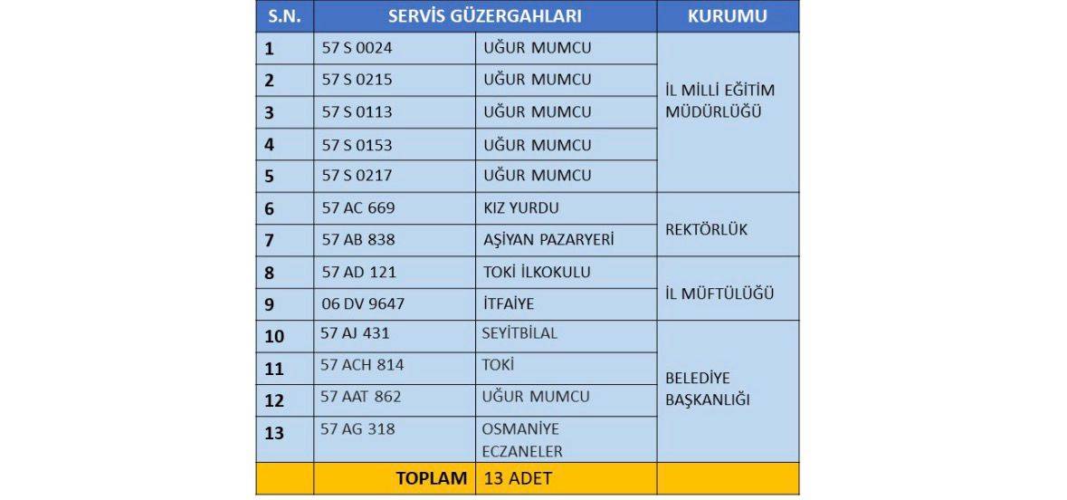 Trafik yoğunluğunu azaltmak amacıyla ücretsiz servislerin devreye gireceğini müjdeleyen Vali Özarslan, “İl Milli Eğitim Müdürlüğü, Üniversitemiz ve Müftülüğümüzün servisleri saat 16.30’dan itibaren; Uğur Mumcu Meydanı, İtfaiye, Aşiyan, TOKİ İlkokulu ve Seyyid Bilal Öğrenci Yurdu önünden sürekli ring seferi yapacaktır. Belediye Başkanlığı tarafından da saat 15.00 itibarıyla belirlenen noktalardan servisler kaldırılacaktır” dedi.