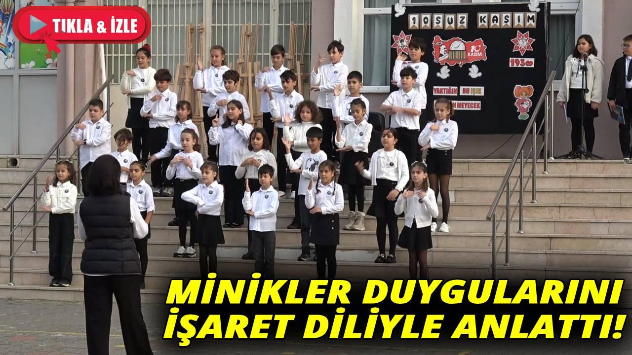Sinop'ta Atatürk İlkokulu öğrencileri, 10 Kasım Atatürk'ü Anma Haftası dolayısıyla "10 Kasım Benim En Büyük Yasım" şarkısını işaret dili ile seslendirdiler.