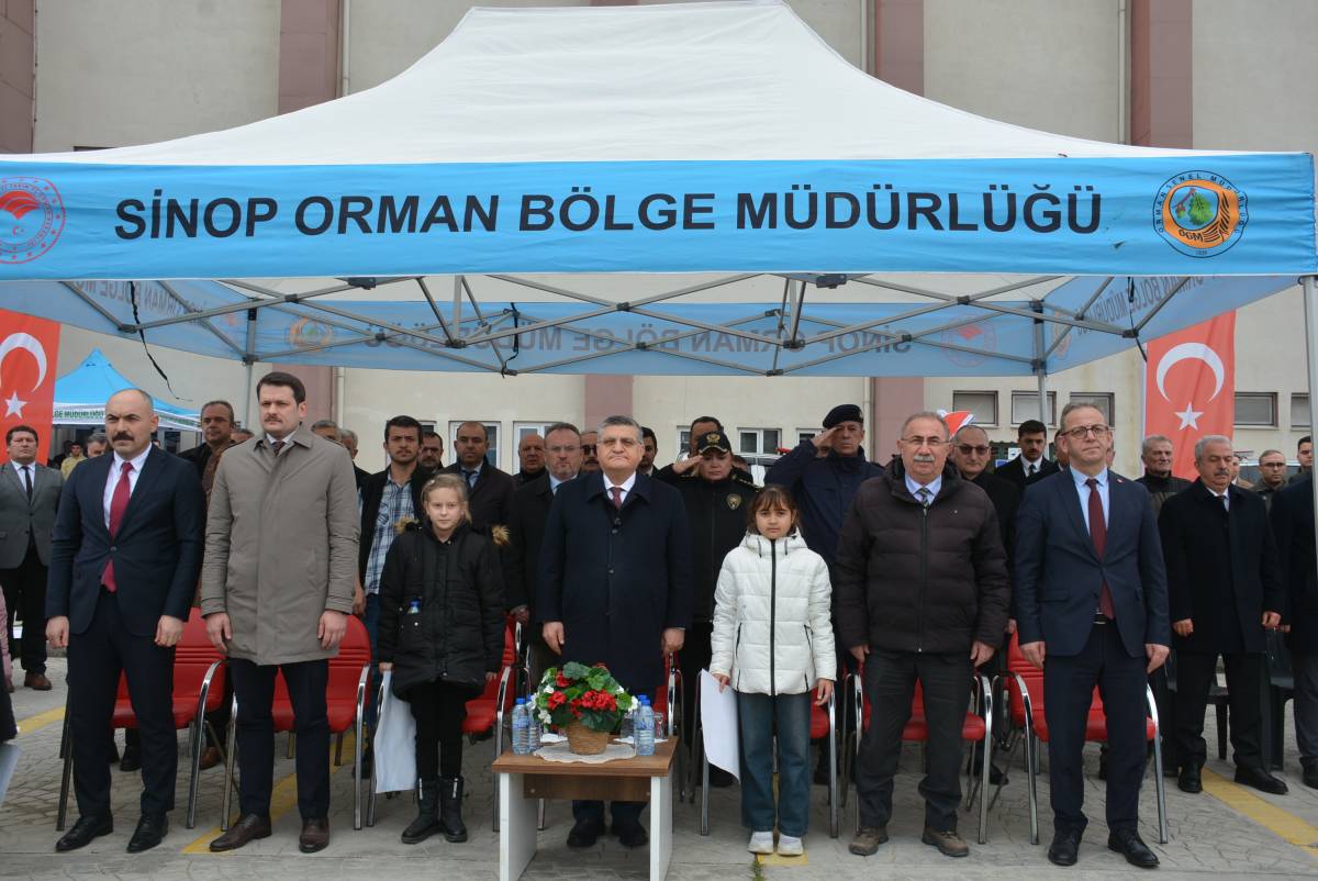Program, saygı duruşu ve İstiklal Marşı’nın okunmasıyla başladı. Sinop Orman Bölge Müdürü Rıdvan Kalelioğlu, etkinlikte yaptığı konuşmada, “Doğanın bizlere sunduğu en büyük mirası olan ormanlarımızın önemini hatırlatmak ve gelecek nesillere daha yeşil bir dünya bırakma sözümüzü tazelemek için bir araya geldik. 21 Mart sadece baharın müjdecisi değil, aynı zamanda Dünya Ormancılık Günü’dür. Ormanlar, sadece ağaç toplulukları değil, dünyamızın nefes aldığı akciğerlerdir. Sunduğu oksijenden içtiğimiz suya, toprağımızı koruyan köklere ve barındırdığı binlerce canlıya kadar hayatın her alanında ormanların izi vardır. Ormansız bir vatan düşünülemez. Bugün fidanlarını dikeceğiniz her bir can, geleceğe nefes olacaktır. Dünya Ormancılık Günü ve Orman Haftası’nı kutluyor, şehitlerimizi rahmetle anıyorum” ifadelerini kullandı.