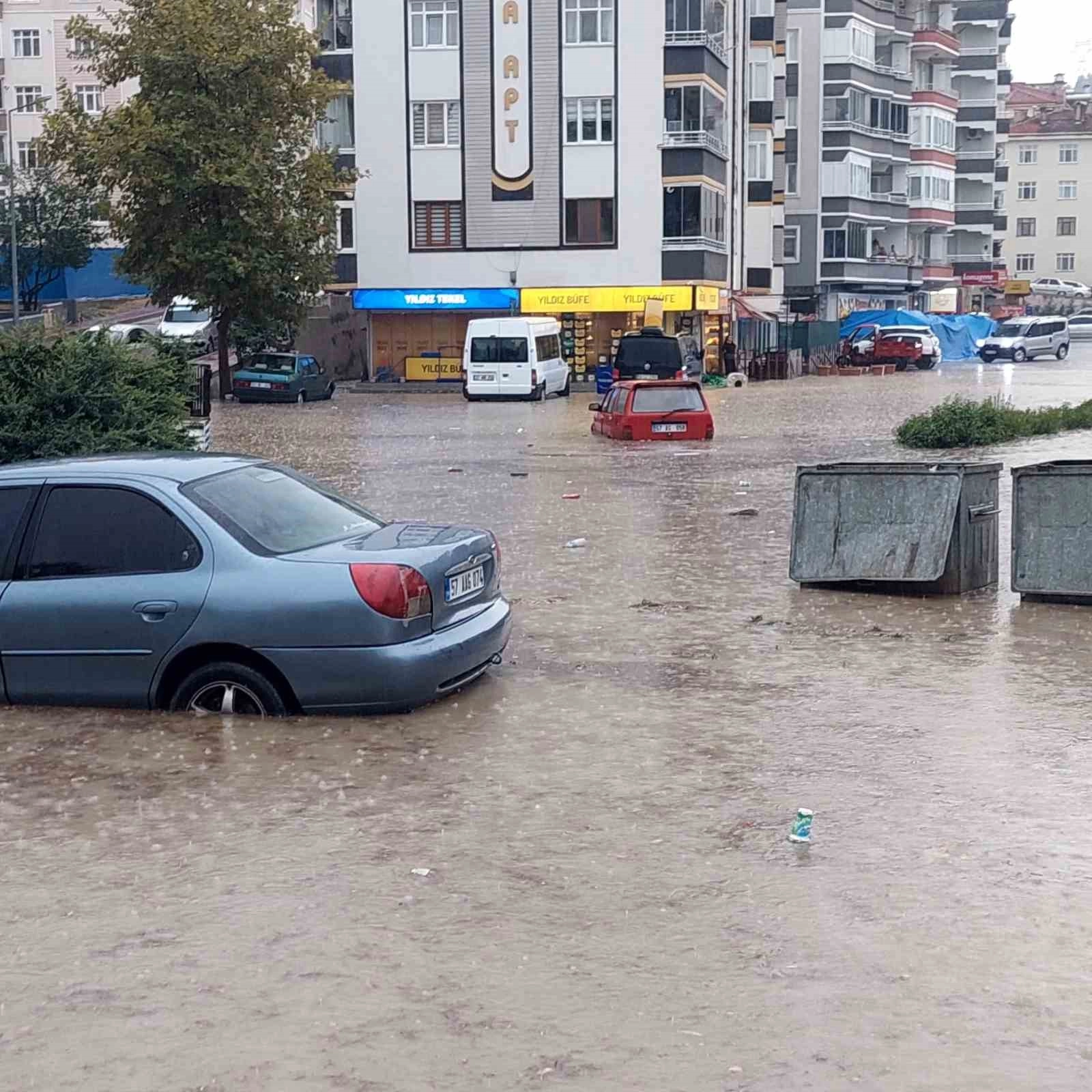 Sinop'un Boyabat ilçesinde etkili olan sağanak yağış, hayatı olumsuz etkiledi.