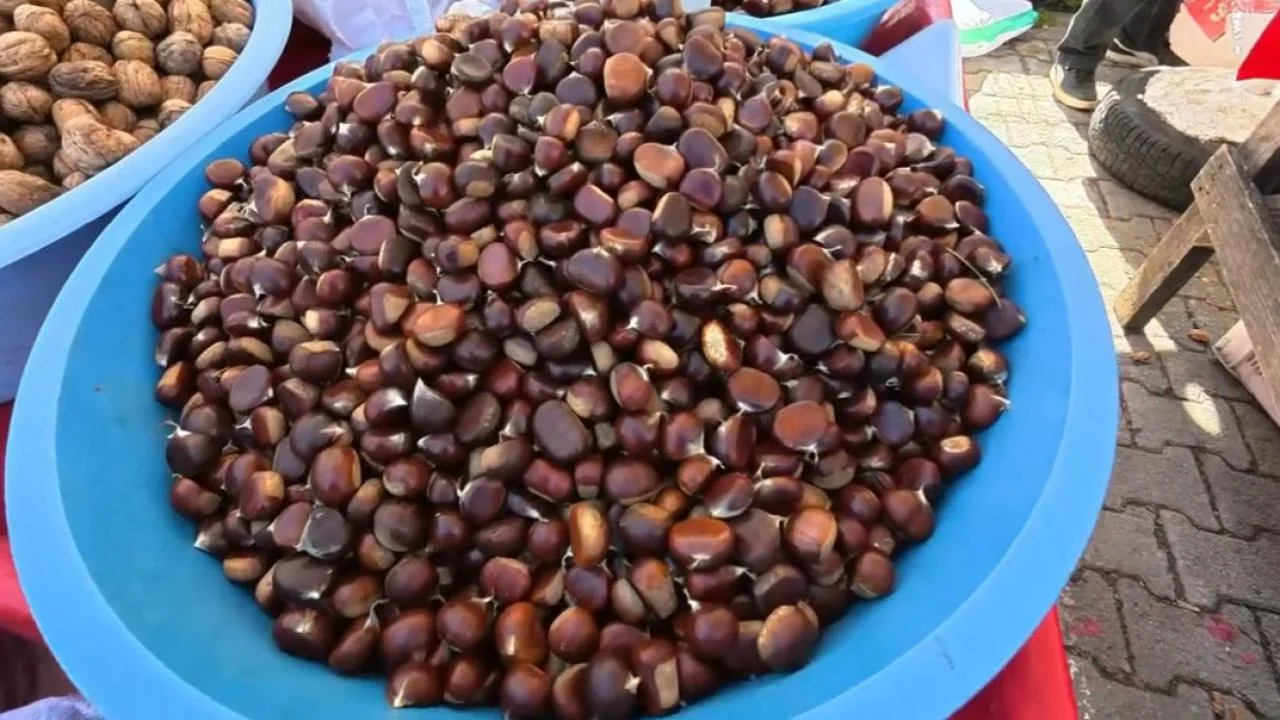 Türkiye’de kestanenin önde gelen üretim merkezlerinden biri olan Sinop’un Erfelek ilçesinde hasadı yapılan sezonun ilk kestaneleri kurulan pazar tezgahlarında kilogram fiyatı iriliğine göre 350-500 lira arasında satışa sunuldu.