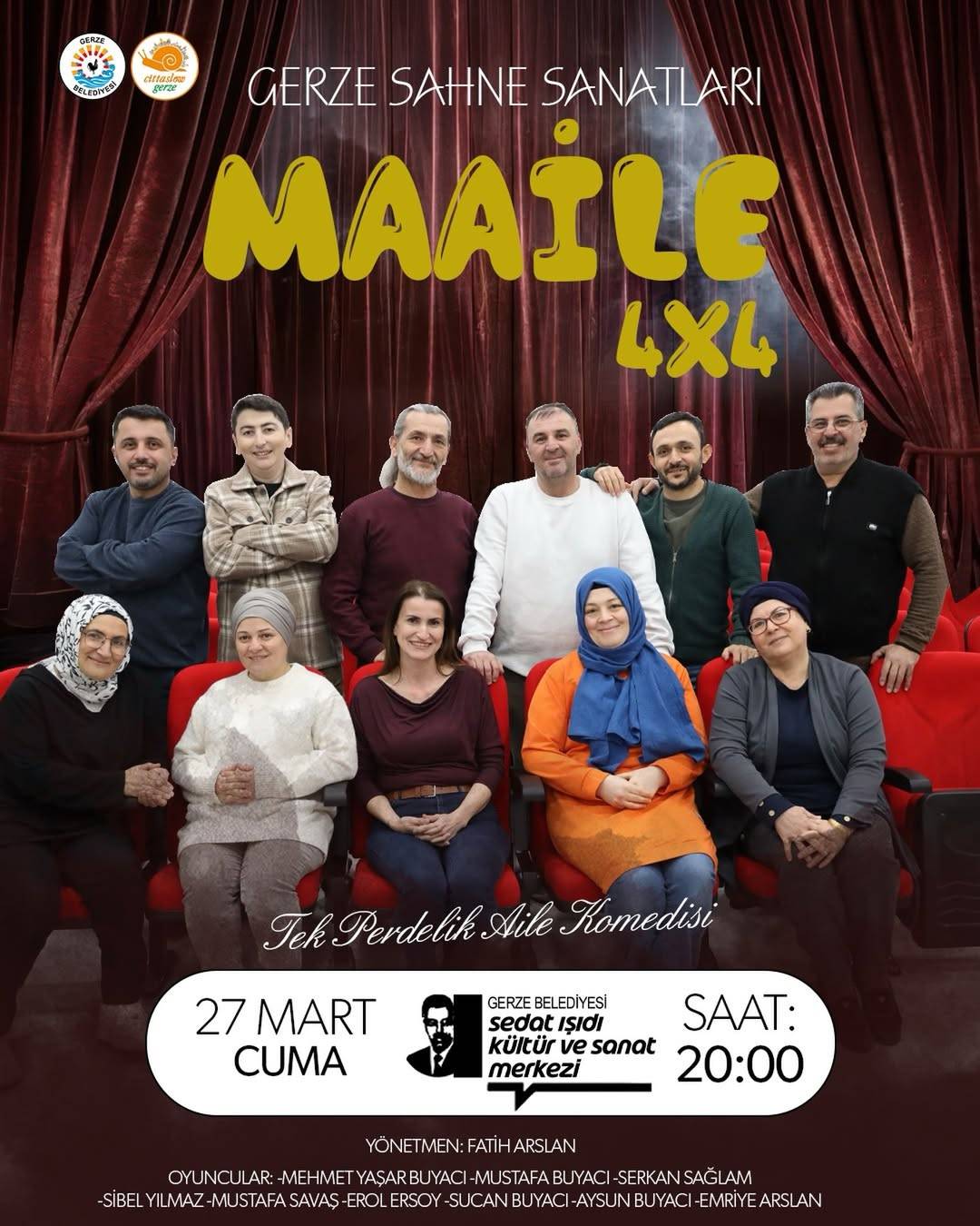 Gerze Sahne Sanatları tarafından sahneye konulan “Maaile 4x4” adlı tek perdelik aile komedisi, izleyiciyle buluşacak. Eğlenceli senaryosu ve geniş oyuncu kadrosuyla dikkat çeken oyun, izleyenlere keyifli anlar yaşatmayı amaçlıyor.