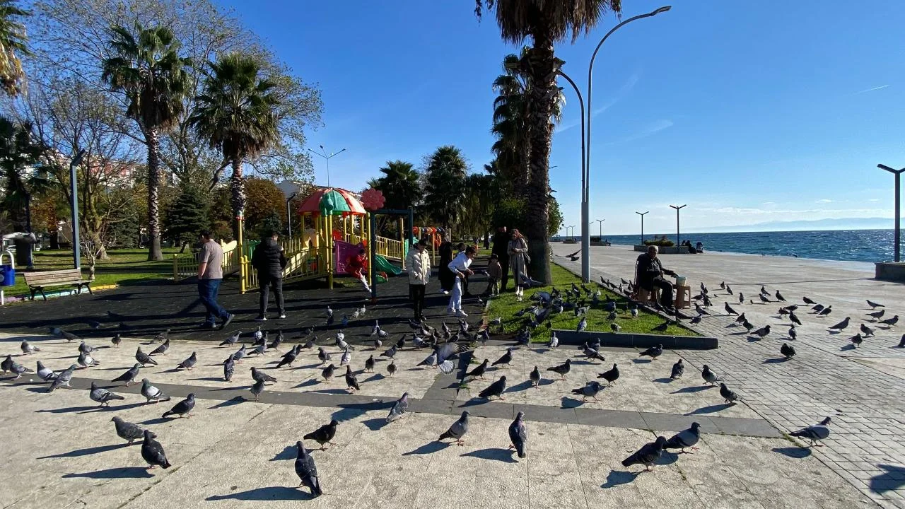 Öte yandan sahil hattında çok sayıda güvercinin yiyecek aradığı, vatandaşların kuşları beslediği anlar renkli görüntülere sahne oldu. Park içinde güneşlenen sokak kedileri de dikkat çekti.
