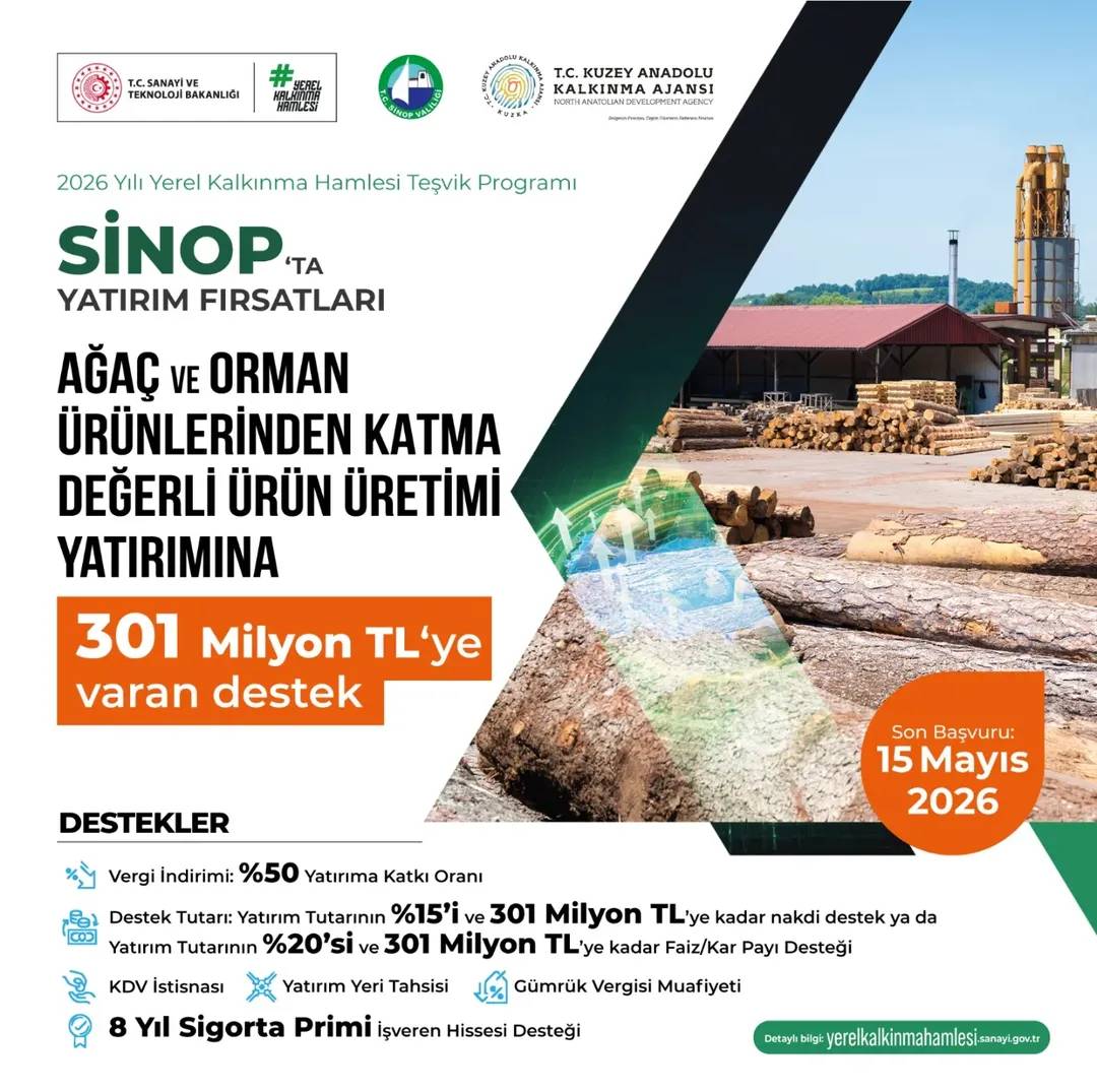 Son başvuru tarihinin 15 Mayıs 2026 olduğu belirtilen programla, Sinop’un sahip olduğu zengin orman varlığının ekonomiye daha yüksek katma değerle kazandırılması hedefleniyor.