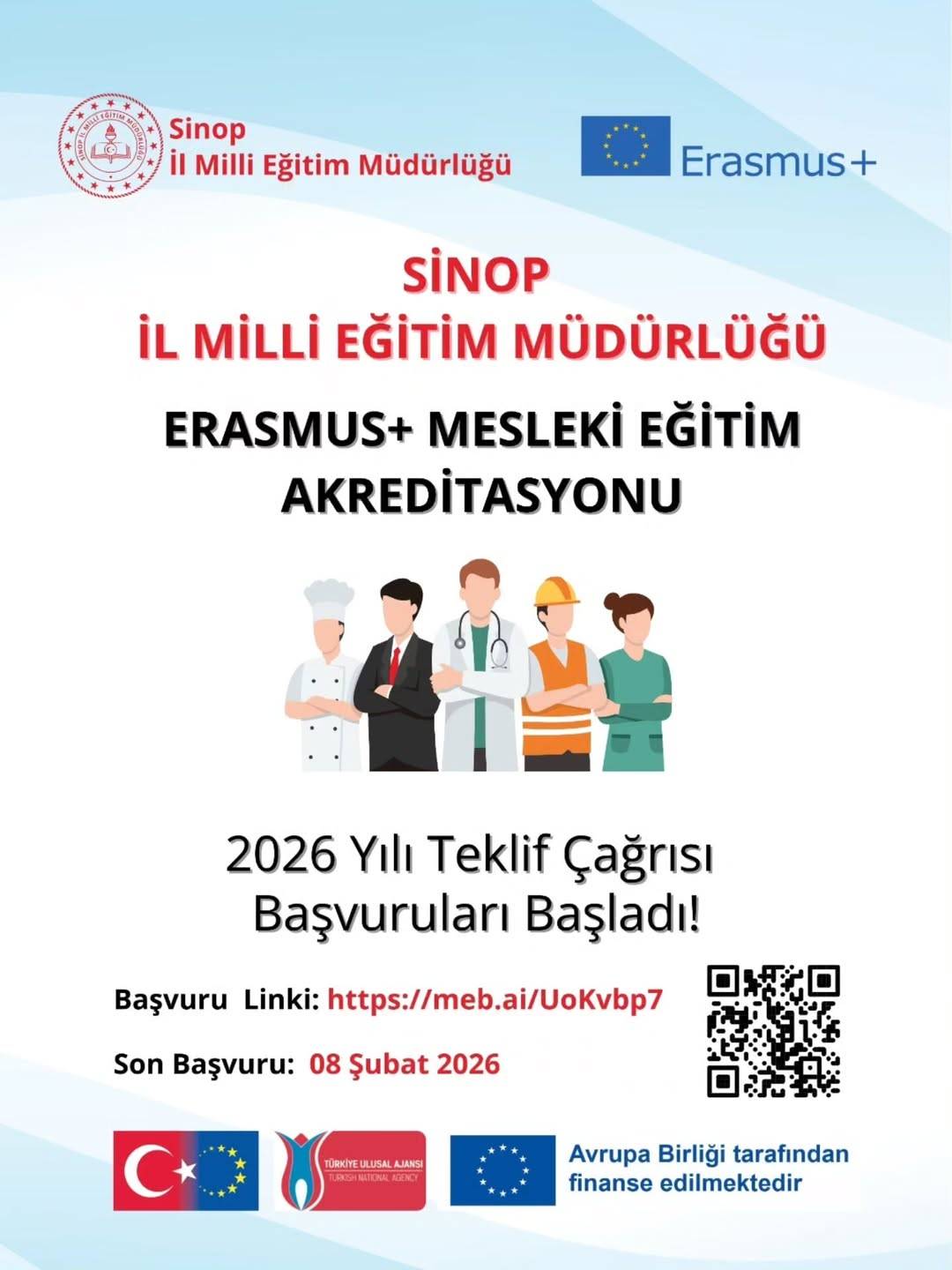 Sinop İl Millî Eğitim Müdürlüğü tarafından Erasmus+ Programı Mesleki Eğitim ve Öğretim Akreditasyonu kapsamında oluşturulan Erasmus+ Mesleki Eğitim Konsorsiyumu için üye alım süreci başlatıldı.