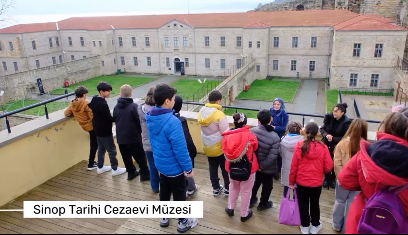 Gezinin son durağı ise Sinop’un en önemli turistik ve tarihî mekânlarından biri olan Sinop Tarihi Cezaevi Müzesi oldu. Öğrenciler, cezaevi tarihini ve buradaki yaşamı rehberler eşliğinde yerinde görerek öğrenme imkânı buldu.