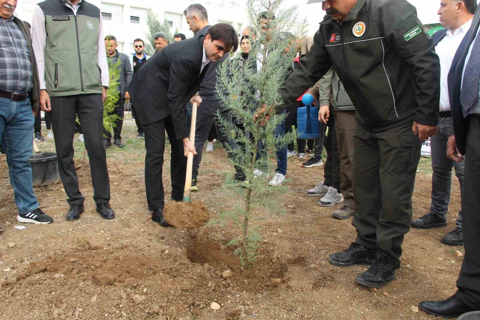 Şırnak Üniversitesi Kampus alanında düzenlenen etkinlikte çocuklar, "Geleceğe Nefes, Cumhuriyet'e Nefes" sloganıyla Cumhuriyet'in 100. yılına özel fidan dikimine katıldı.
