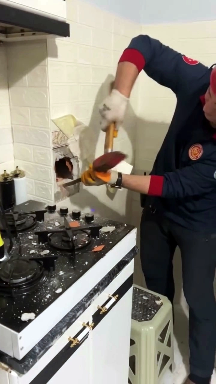 Sakarya'da bir evin soba bacası içerisinde sıkışan güvercin, itfaiye ekiplerinin duvarı kırması neticesinde kurtarıldı.