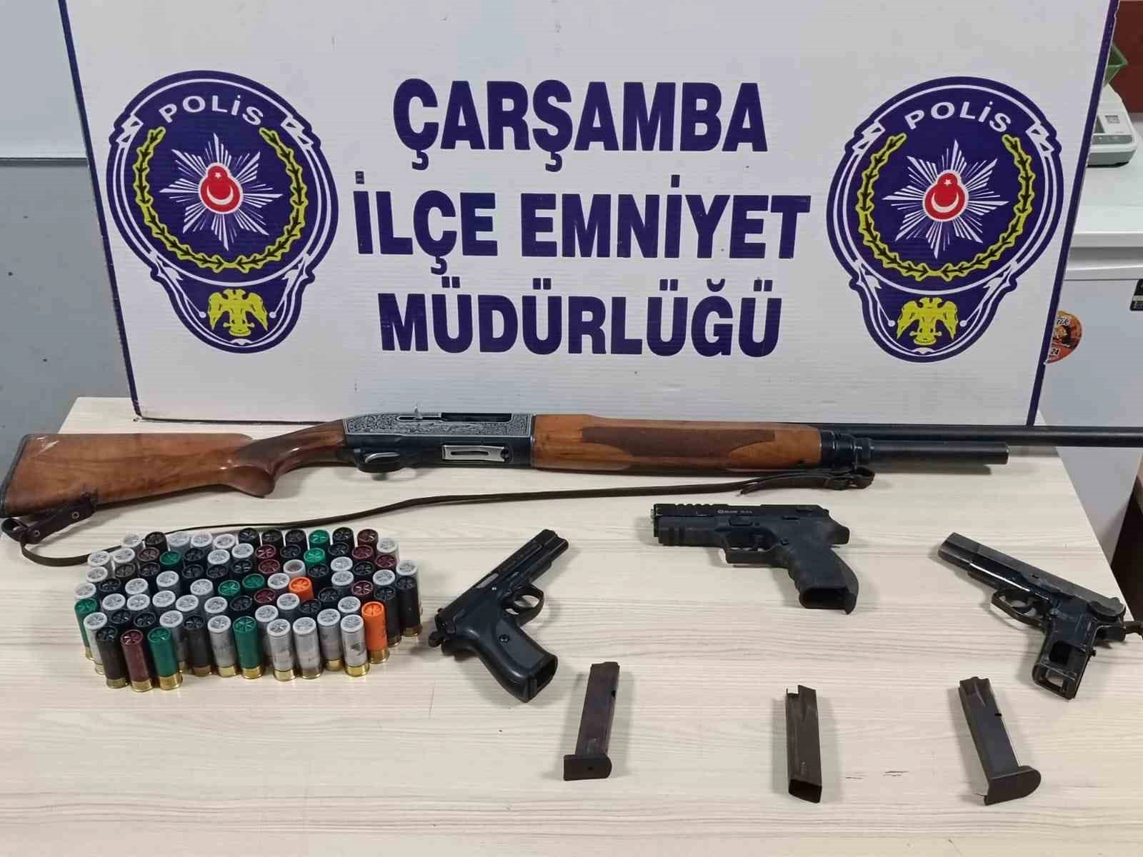Olay, Samsun'un Çarşamba ilçesinin meydana geldi. Edinilen bilgiye göre, Samsun Emniyet Müdürlüğü Siber Suçlarla Mücadele Şube Müdürlüğüne bağlı sanal devriye ekipleri yaptıkları çalışmada, silahla ateş açarak sosyal medya üzerinden genel güvenliği kasten tehlikeye düşürücü görüntüler paylaştığı tespit edilen E.Ş.'nin kimliğini ve adresini tespit etti. Çarşamba İlçe Emniyet Müdürlüğü ekipleri tarafından E.Ş.'nin evinde yapılan aramada, 3 adet kurusıkı tabanca, 3 adet kurusıkı tabanca şarjörü, 1 adet ruhsatsız av tüfeği, 79 adet tüfek kartuşu ele geçirilirken, E.Ş. hakkında yasal işlem başlatıldı.