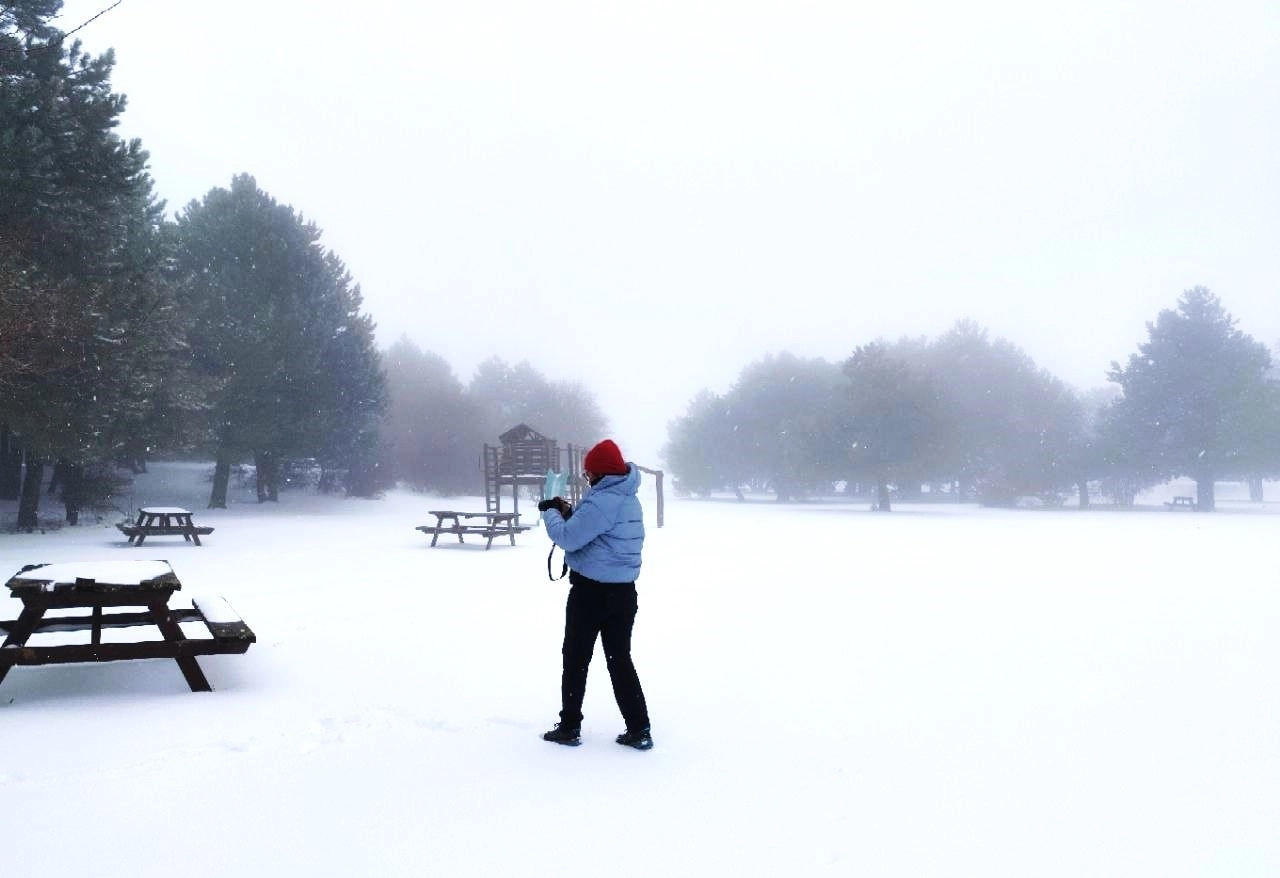 Karla kaplanan Spil Dağı Milli Parkı Atalanı günübirlik piknik alanında ise kartpostallık görüntüler oluştu.